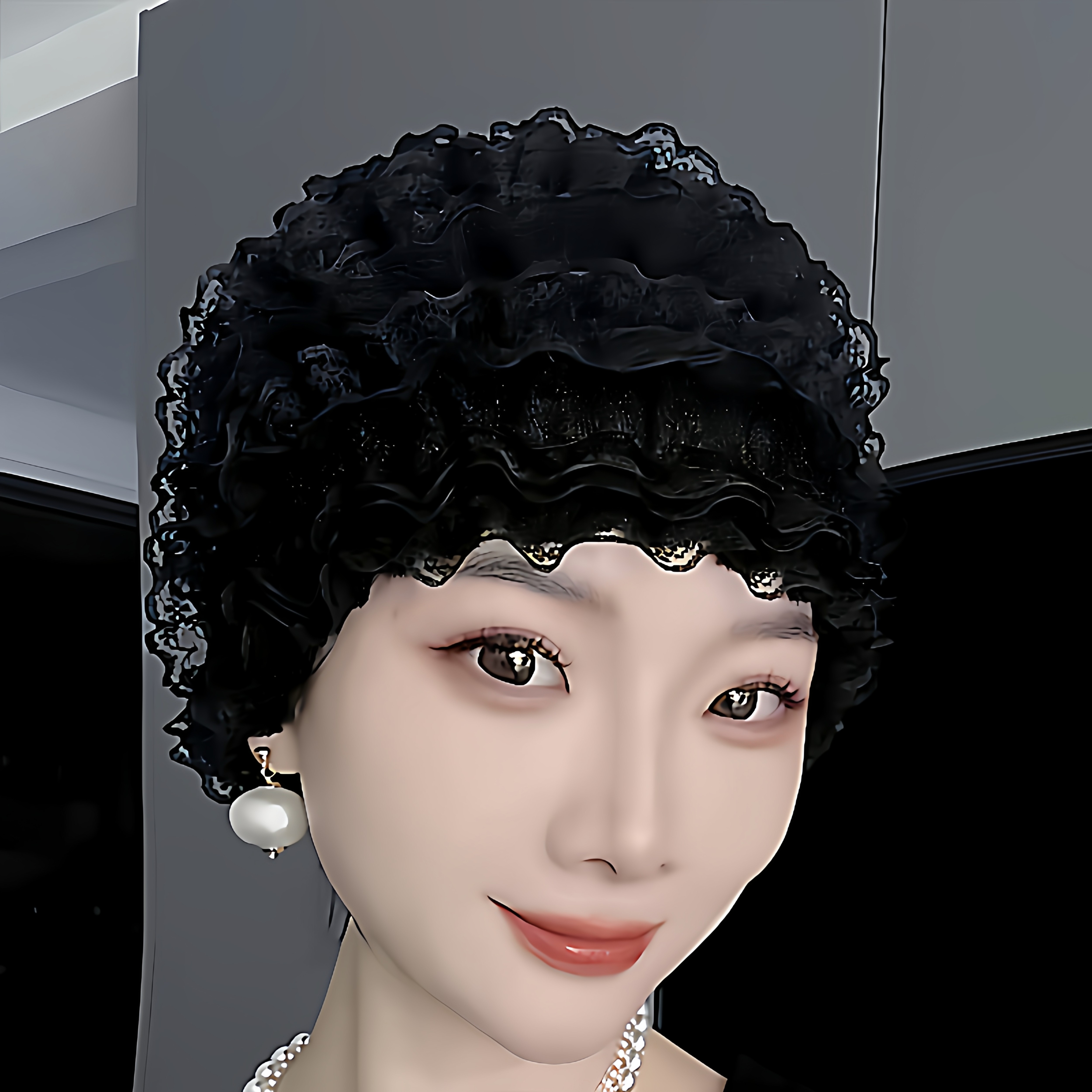 【天猫正品】春夏季蕾丝花边薄款妈妈帽遮白发包头帽防尘遮阳时尚