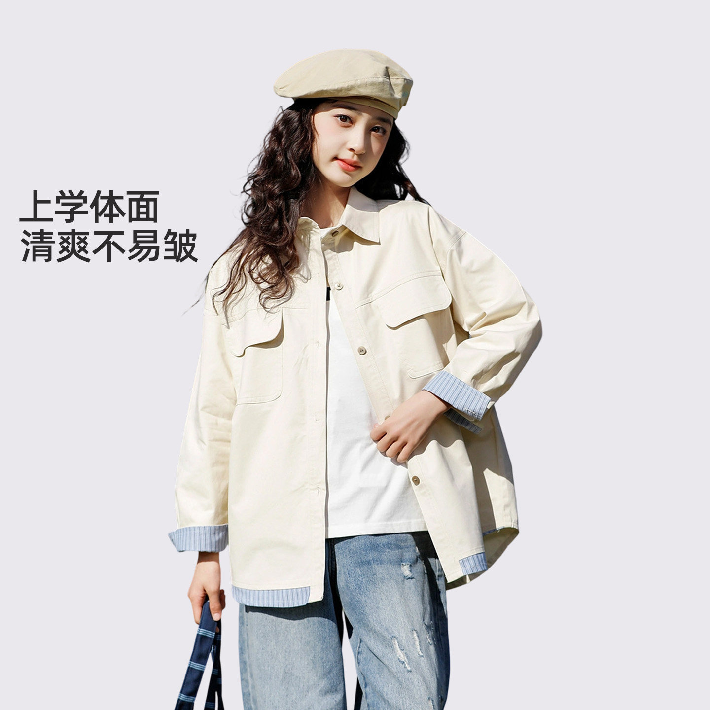 女童衬衫春秋2026新款女大童纯棉长袖衬衣初中生女薄外套春装上衣