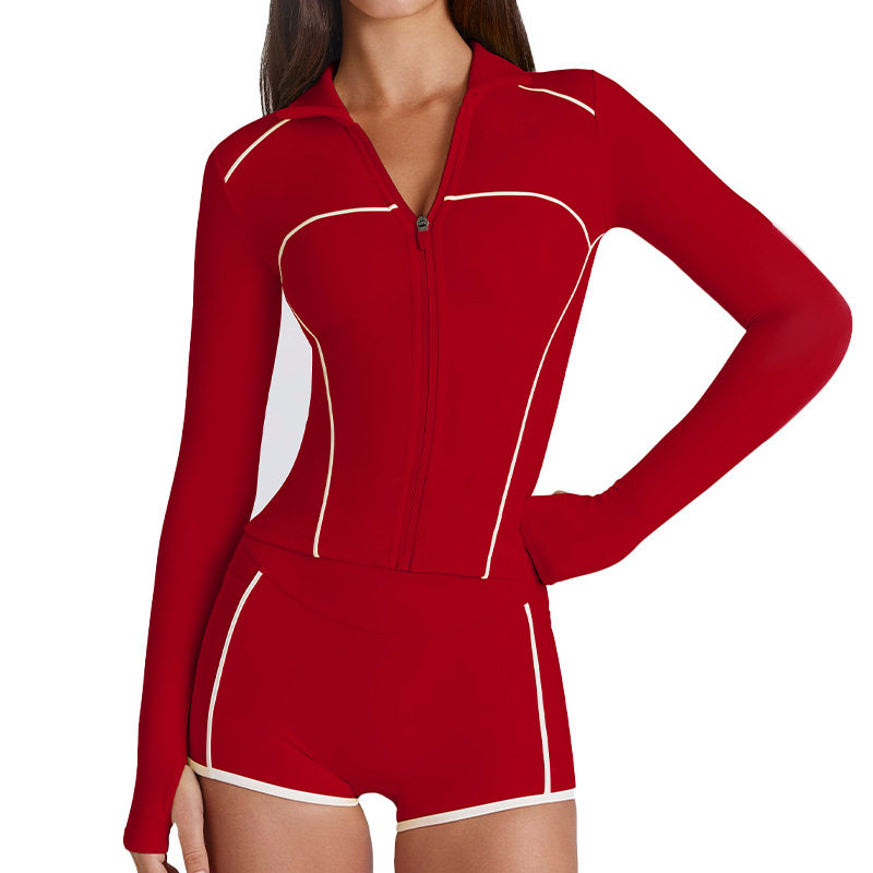撞色文胸上衣长袖短袖长裤短裤短裙百褶裙拉链外套瑜伽服六件套装