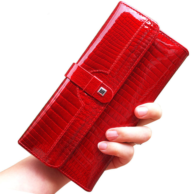 女士真皮钱包按扣漆皮鳄鱼纹多卡位钱夹手机包手拿包零钱包手气红