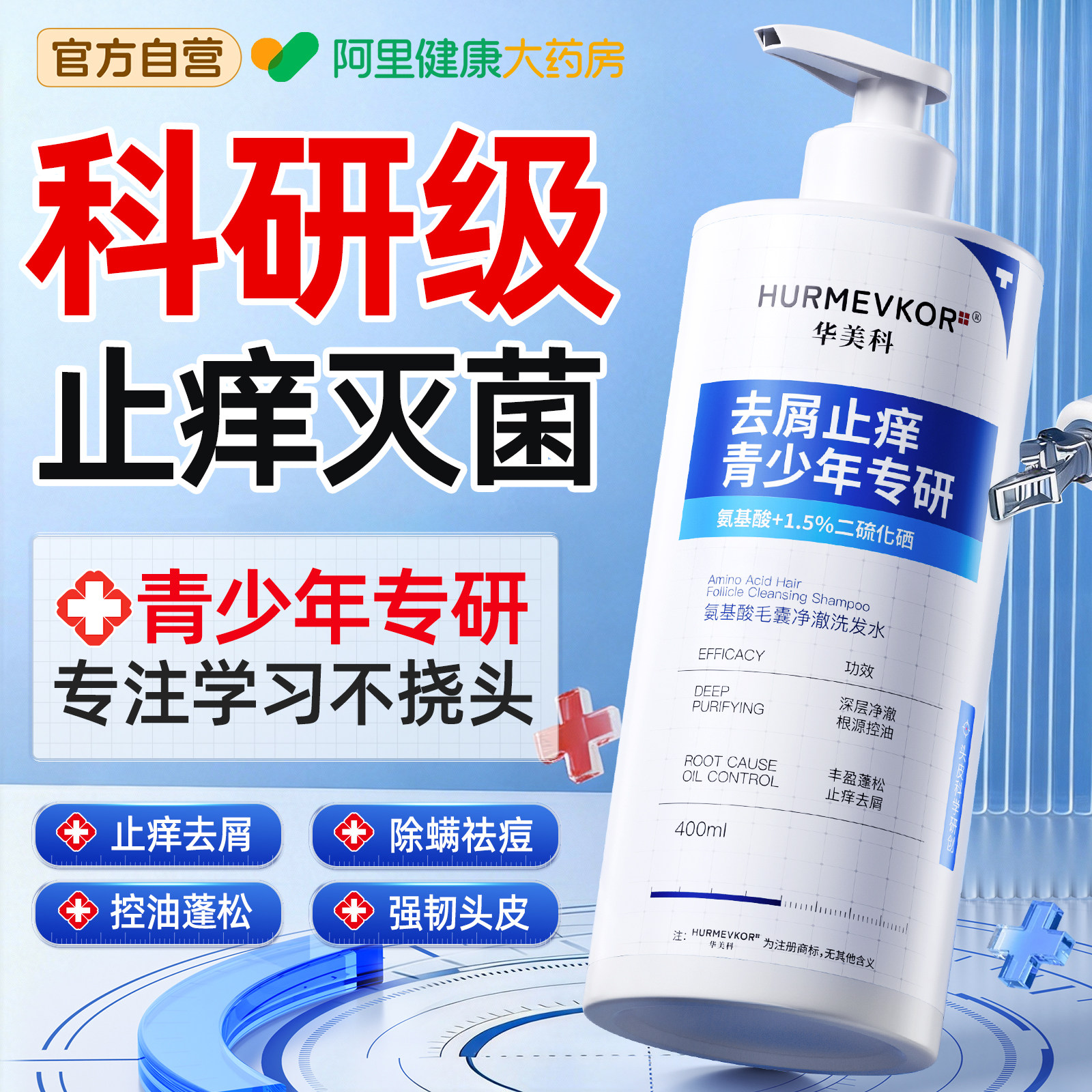 青少年控油蓬松去屑止痒官方旗舰店正品二硫化硒儿童洗发水液露
