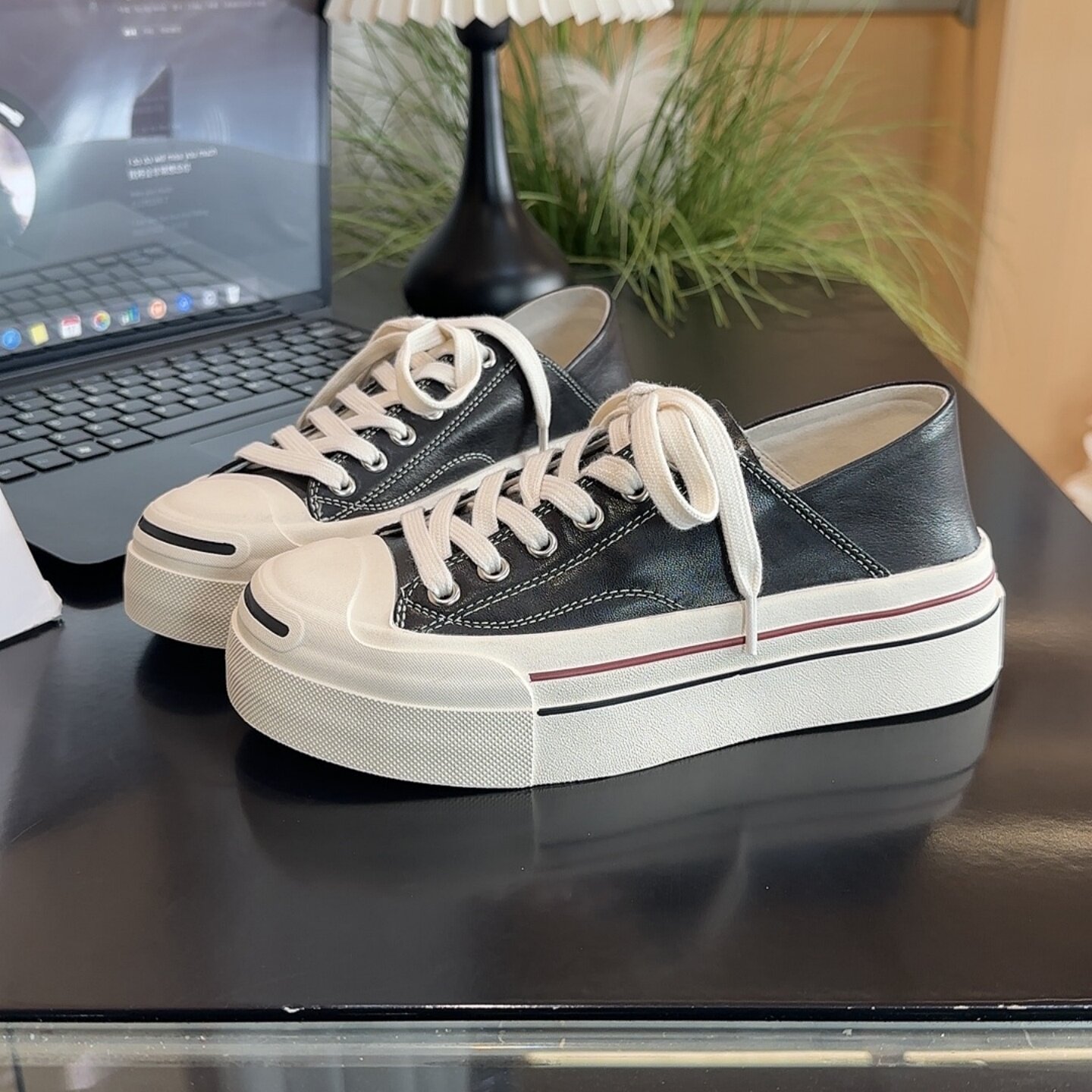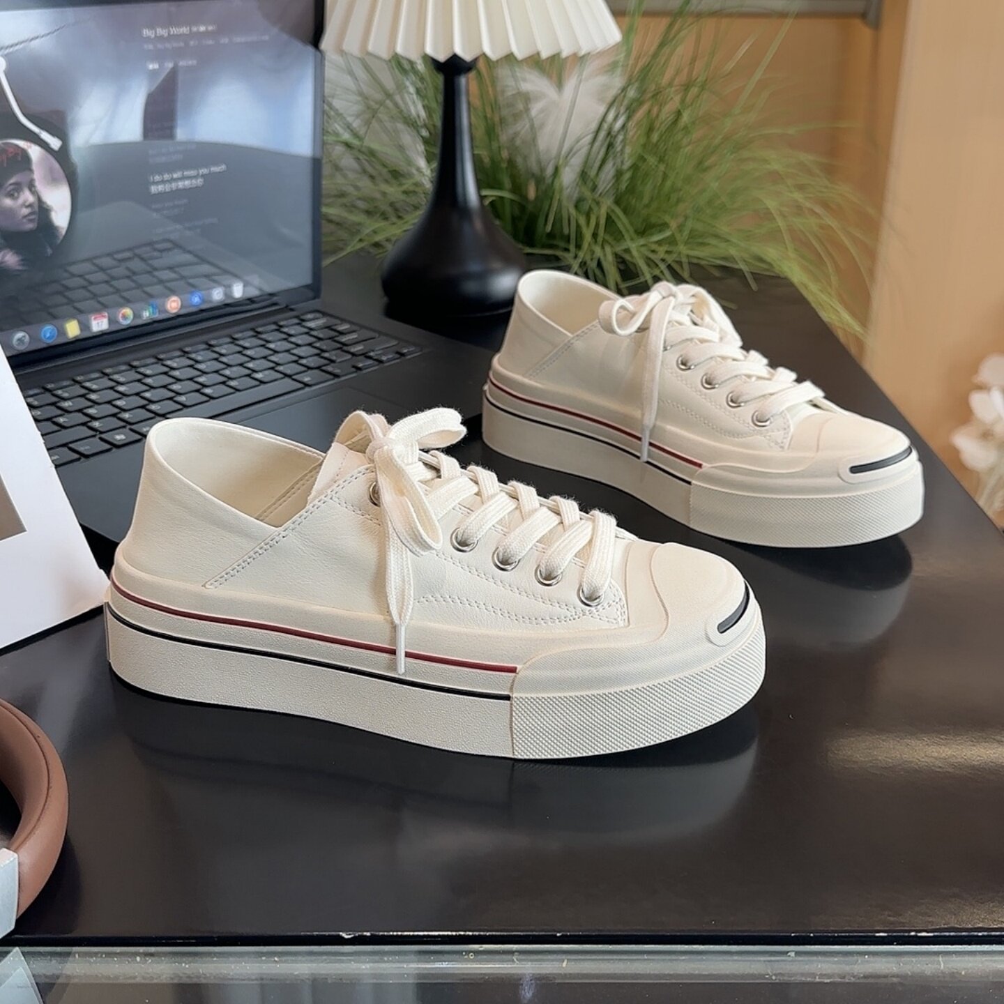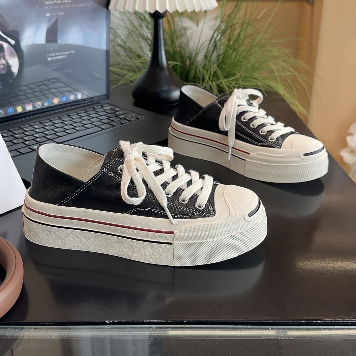 头层牛皮两穿轻便小白鞋女款2026新款经典百搭韩系白色厚底板鞋子