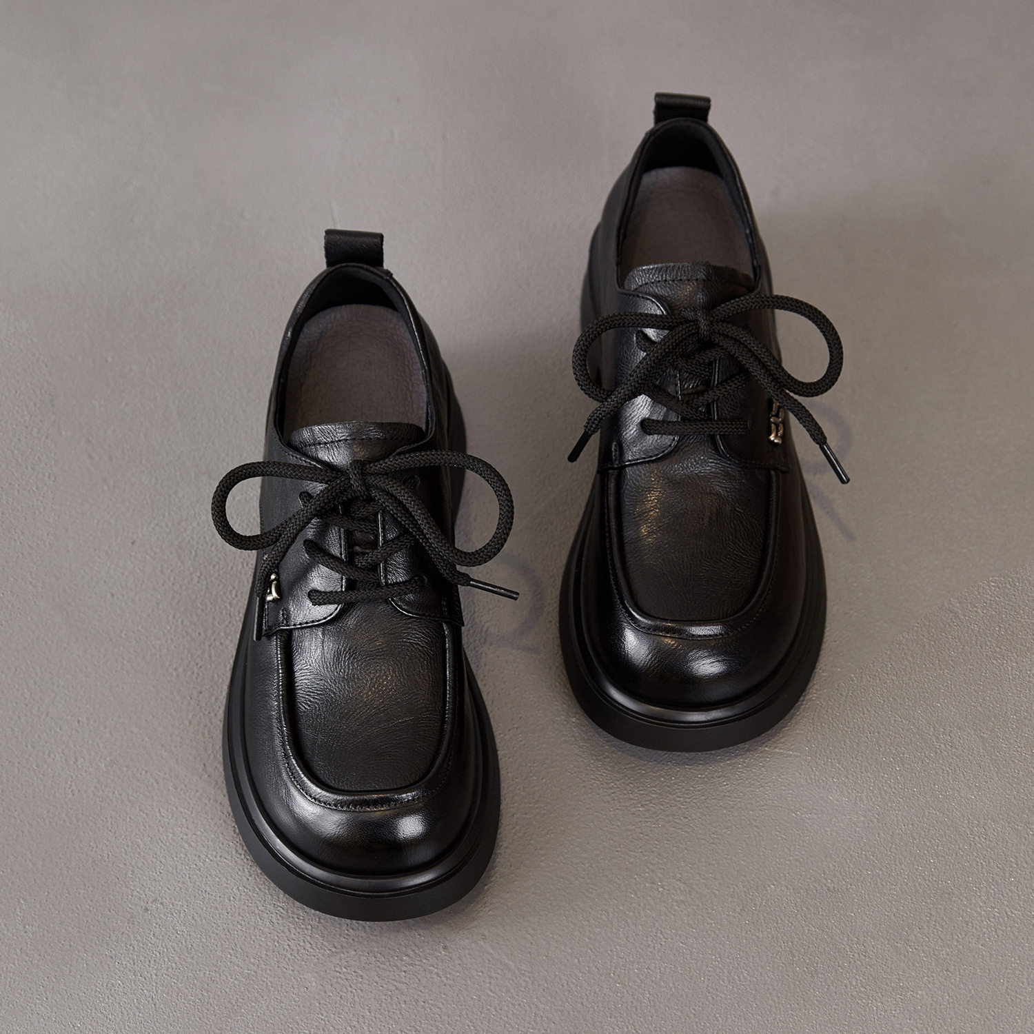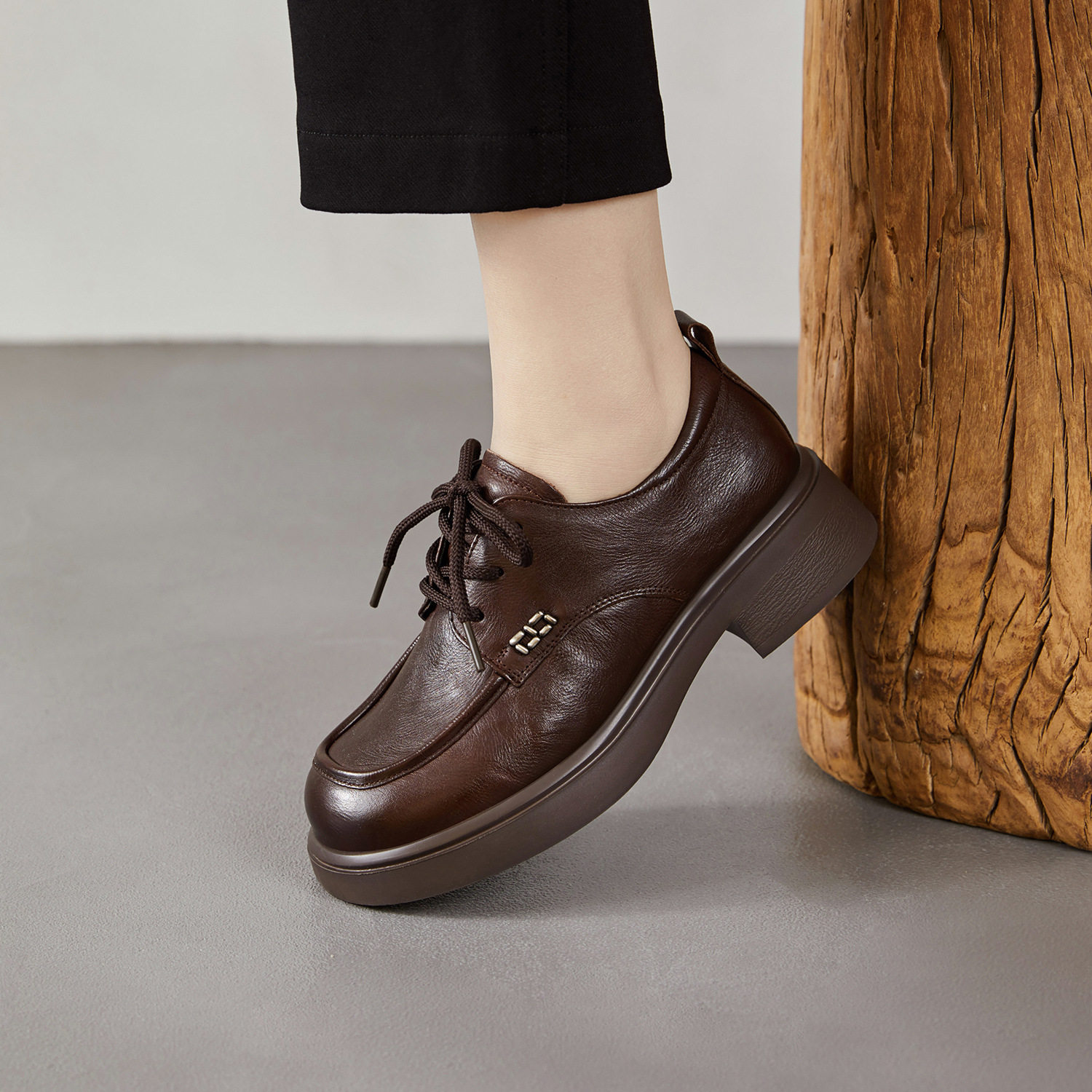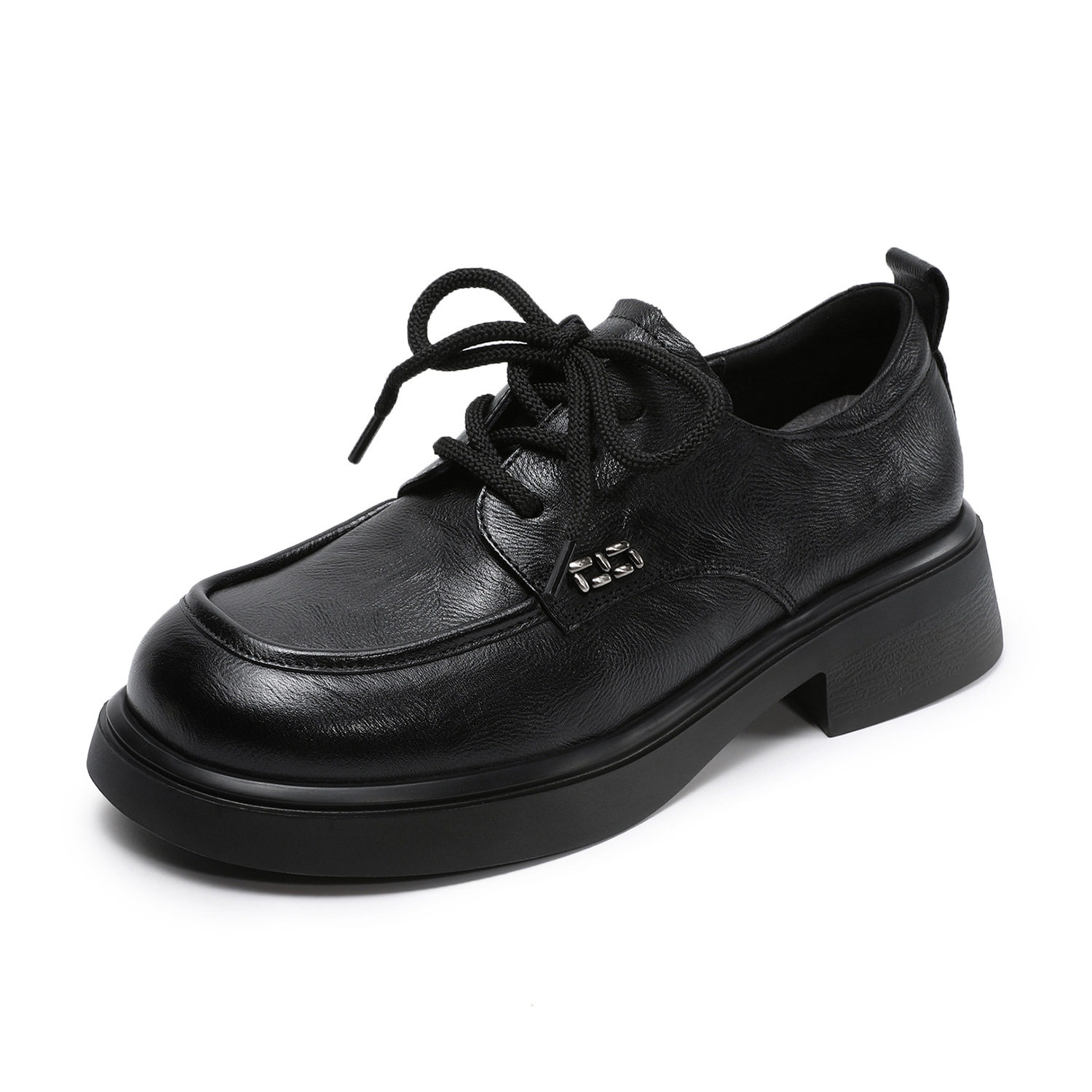 真皮鞋子女头层牛皮复古英伦系带中跟小皮鞋2025春季新款百搭单鞋