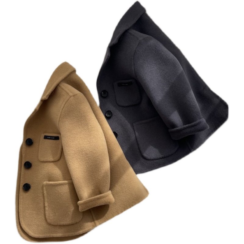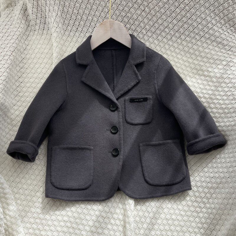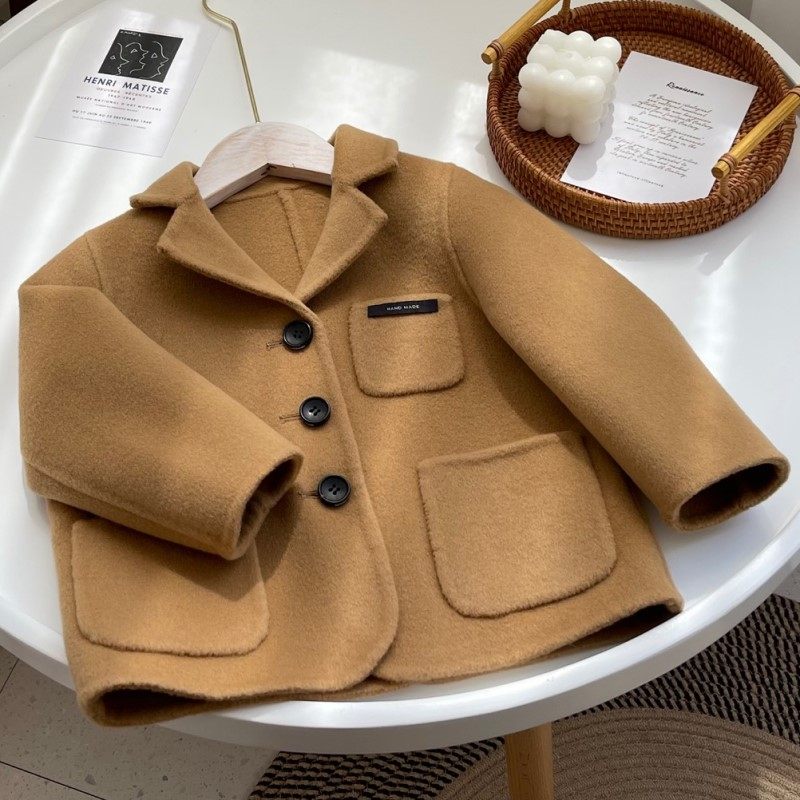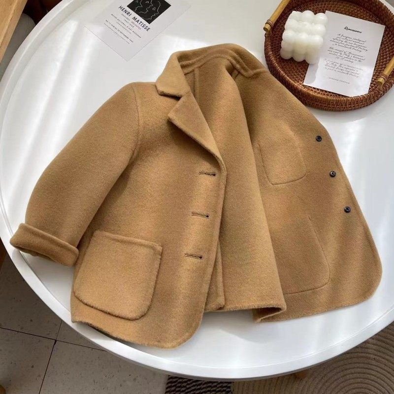 西装双面羊绒男童女童秋冬短款羊毛呢洋气大衣休闲复古纯手工外套