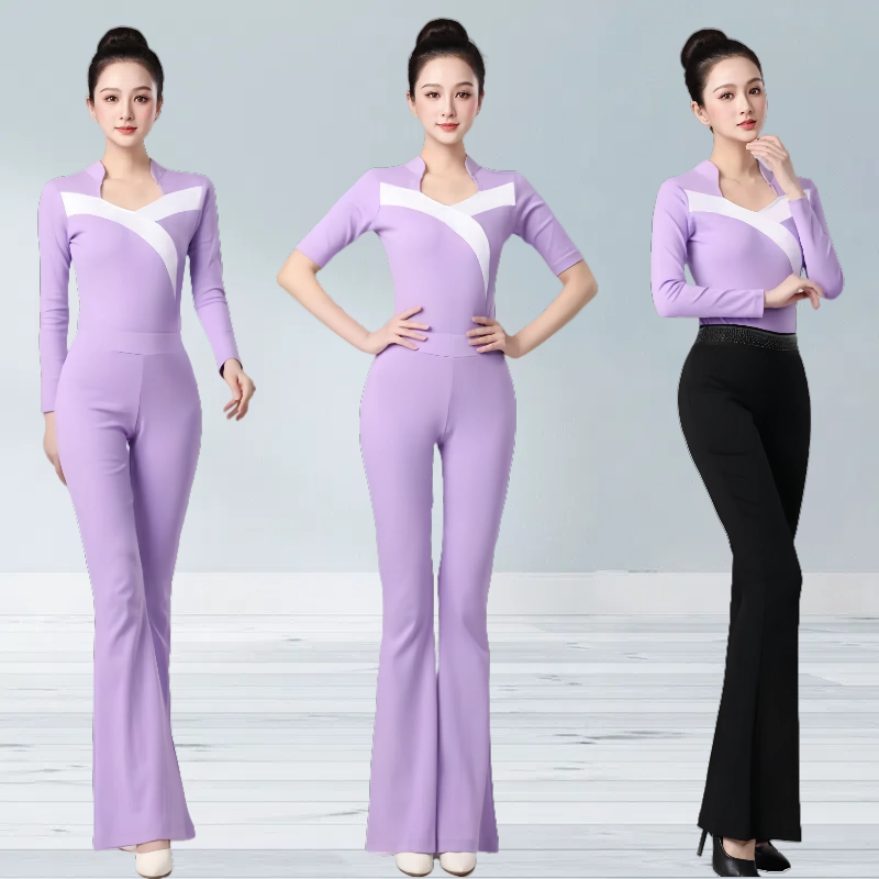 形体服套装女士成人新款春季纯棉喇叭裤立领上衣礼仪高端训练服装