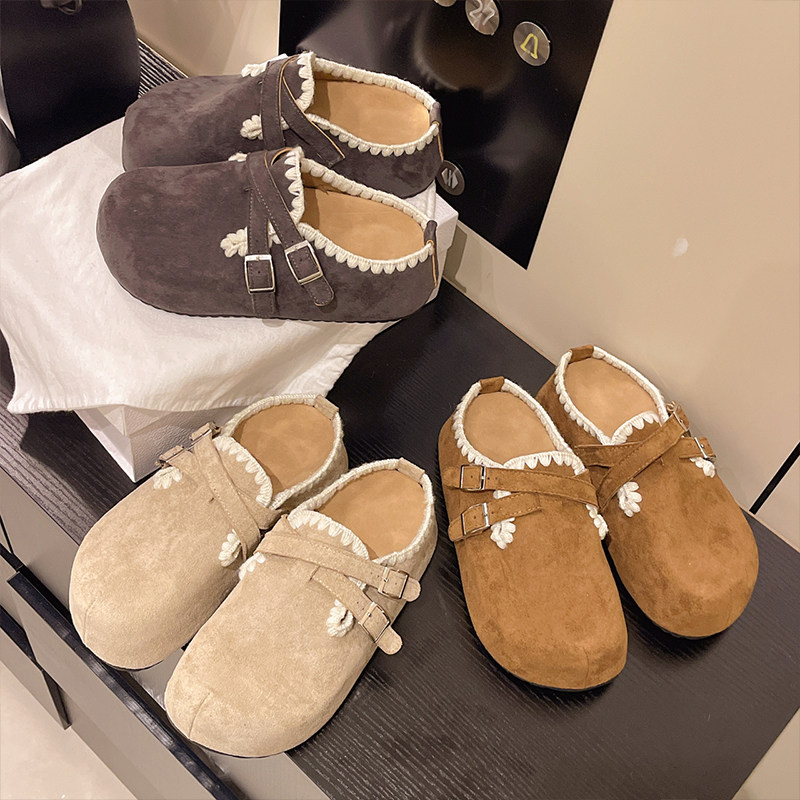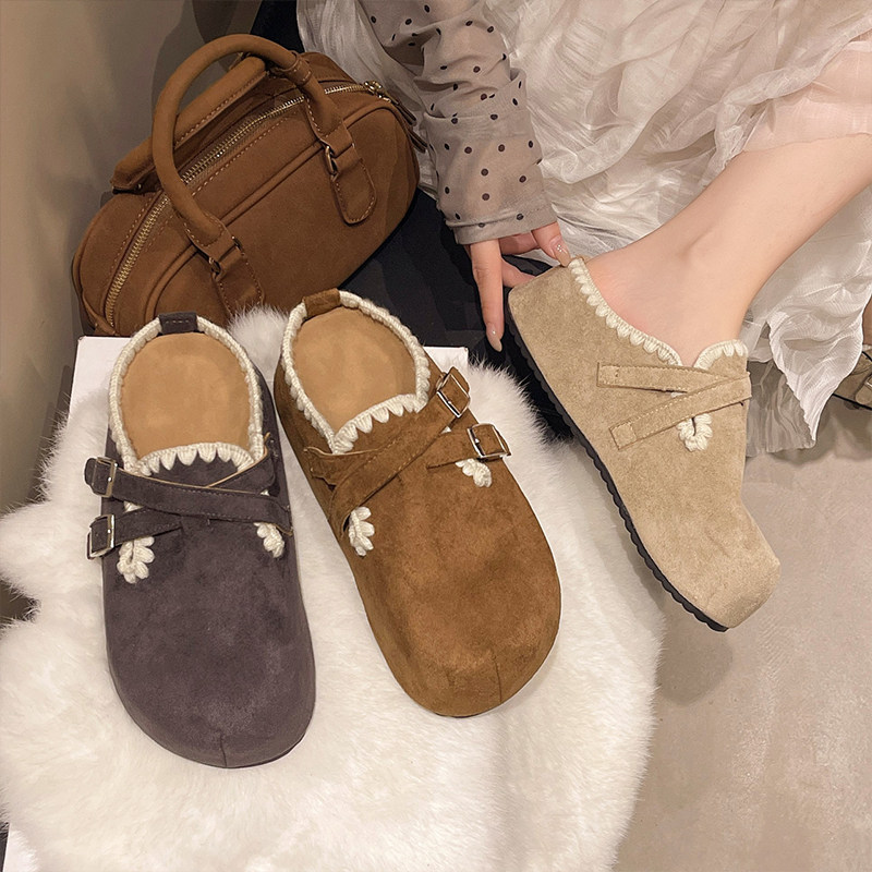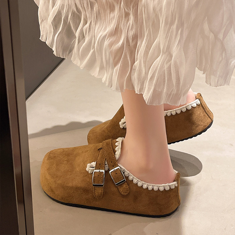 复古松糕厚底内增高包头半拖鞋女外穿2026新款秋季一脚蹬勃肯单鞋