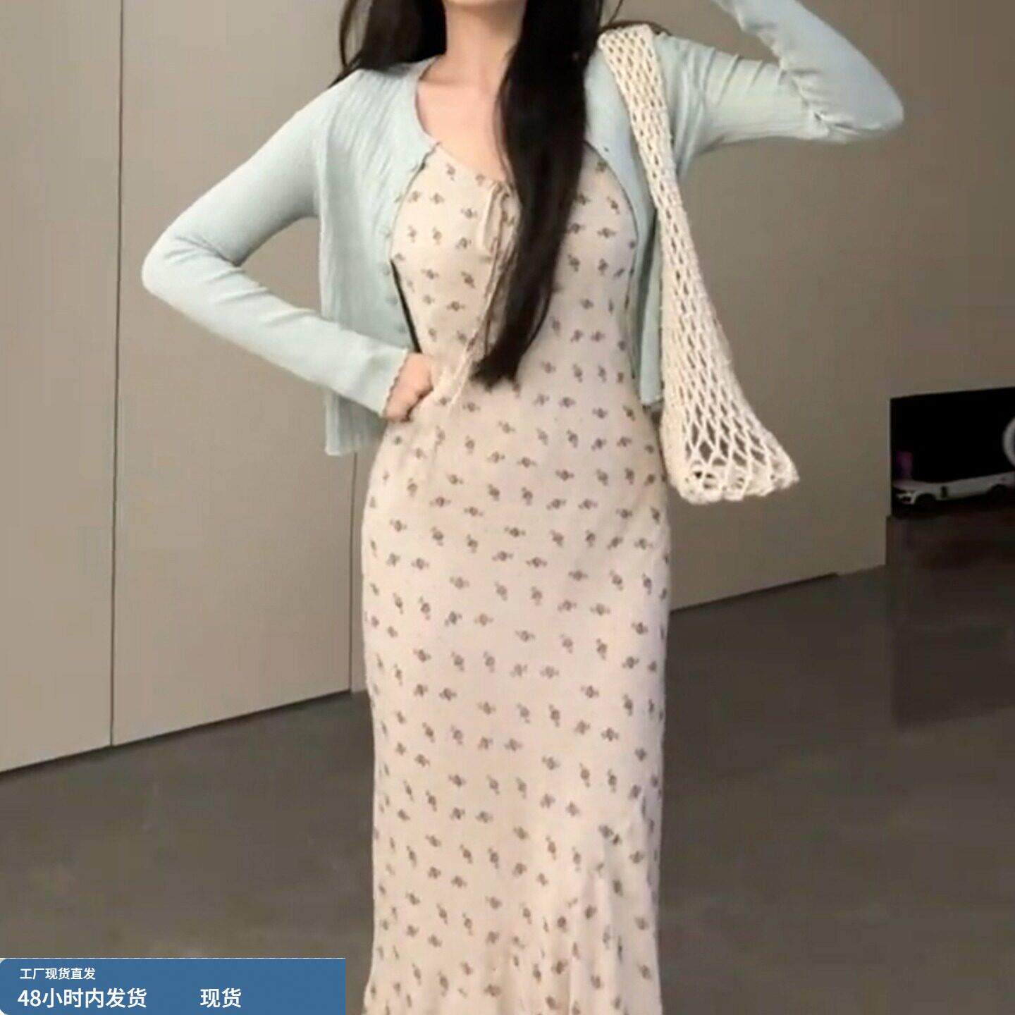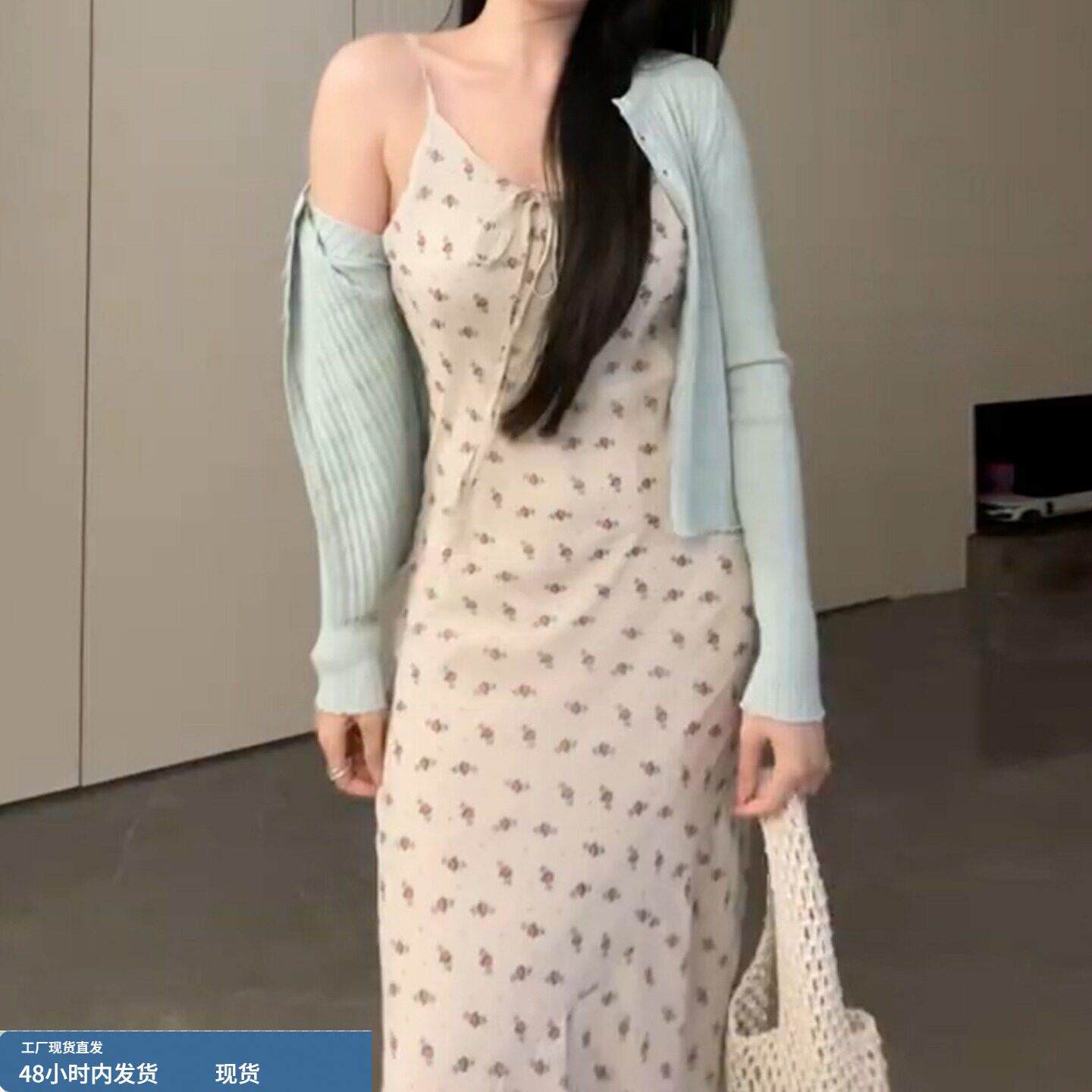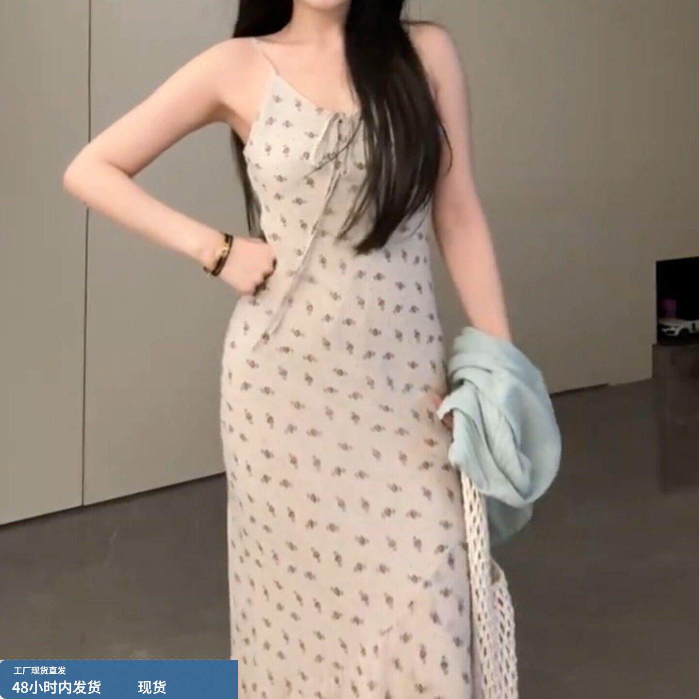 145小矮个子碎花吊带连衣裙女150显高穿搭收腰法式A字包臀长裙xs