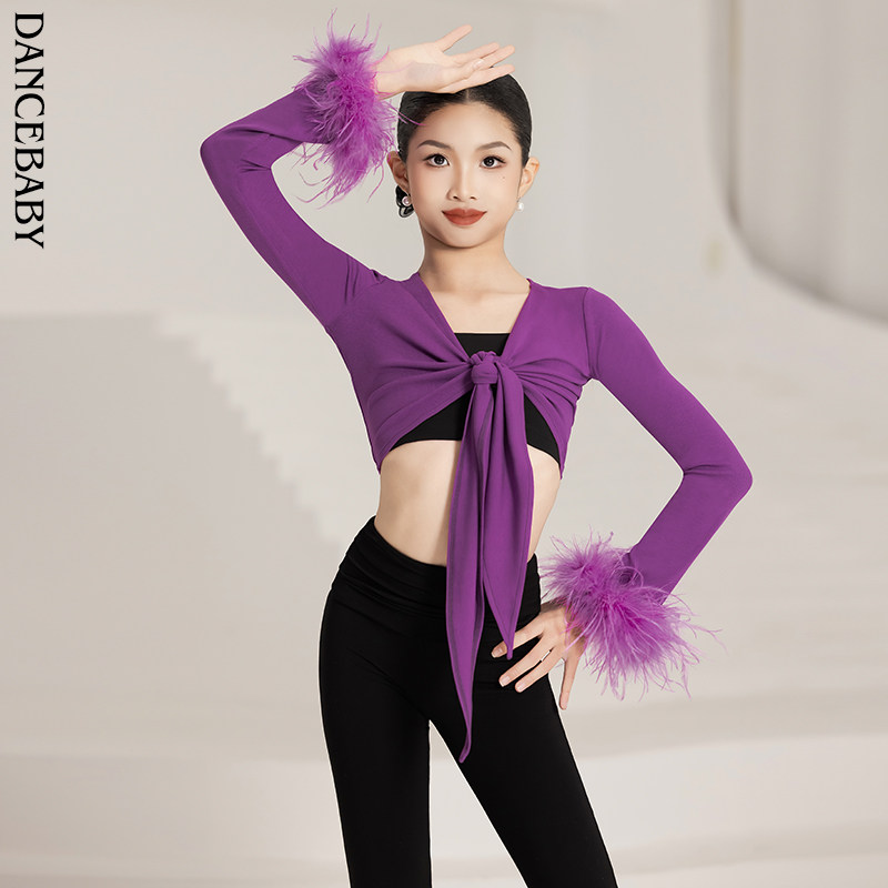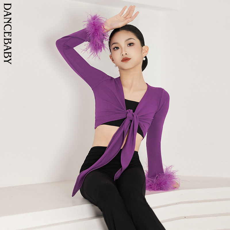 Dancebaby拉丁舞服练习服表演比赛舞服高级鸵鸟毛上衣裤子DAS827