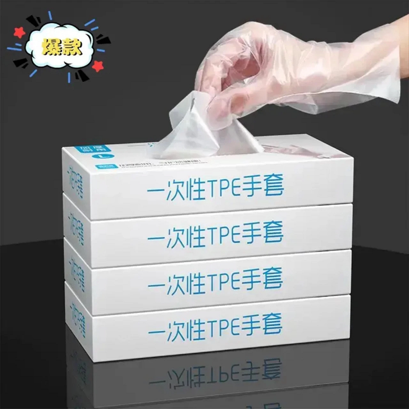 100只装一次性TPE手套食品级加厚耐用厨房专用盒装餐饮手套