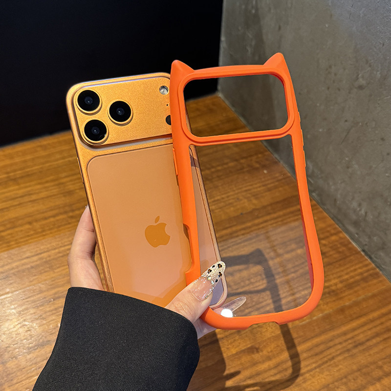 【新款星宇橙】适用于iPhone17promax手机壳创意可爱猫耳朵苹果17高级透明亚克力17pro全包防摔情侣款硬套