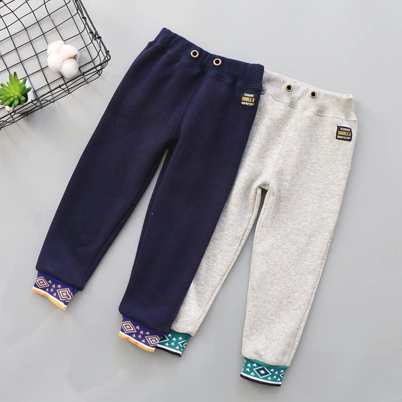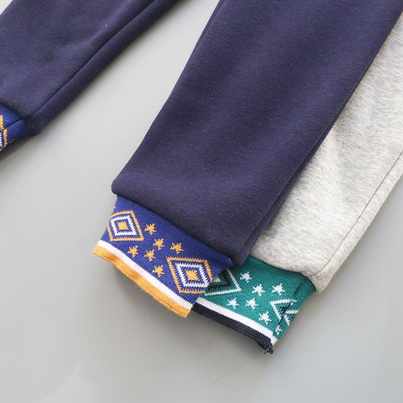 日系Miki童装儿童秋冬加绒裤子纯棉加厚男童中小童不倒绒收腿长裤