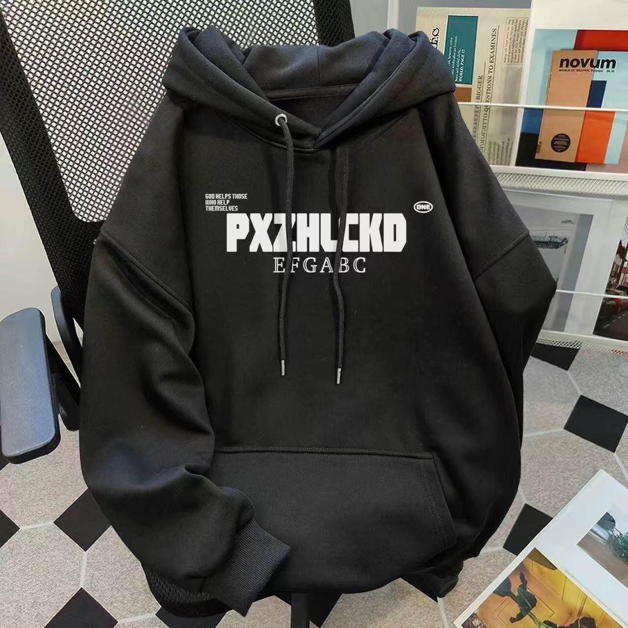 青少年慵懒秋冬初高中生男女生英文字母印花连帽带兜运动百搭卫衣