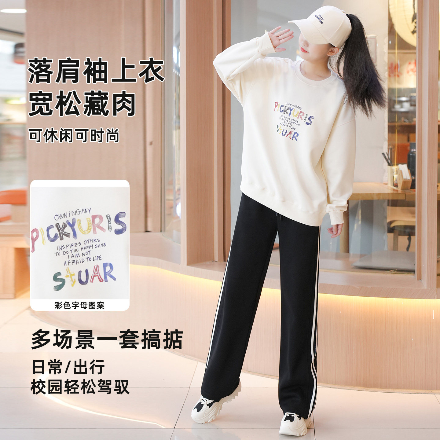 女大童秋装新款套装2025青少年初高中生时尚字母卫衣搭休闲运动裤