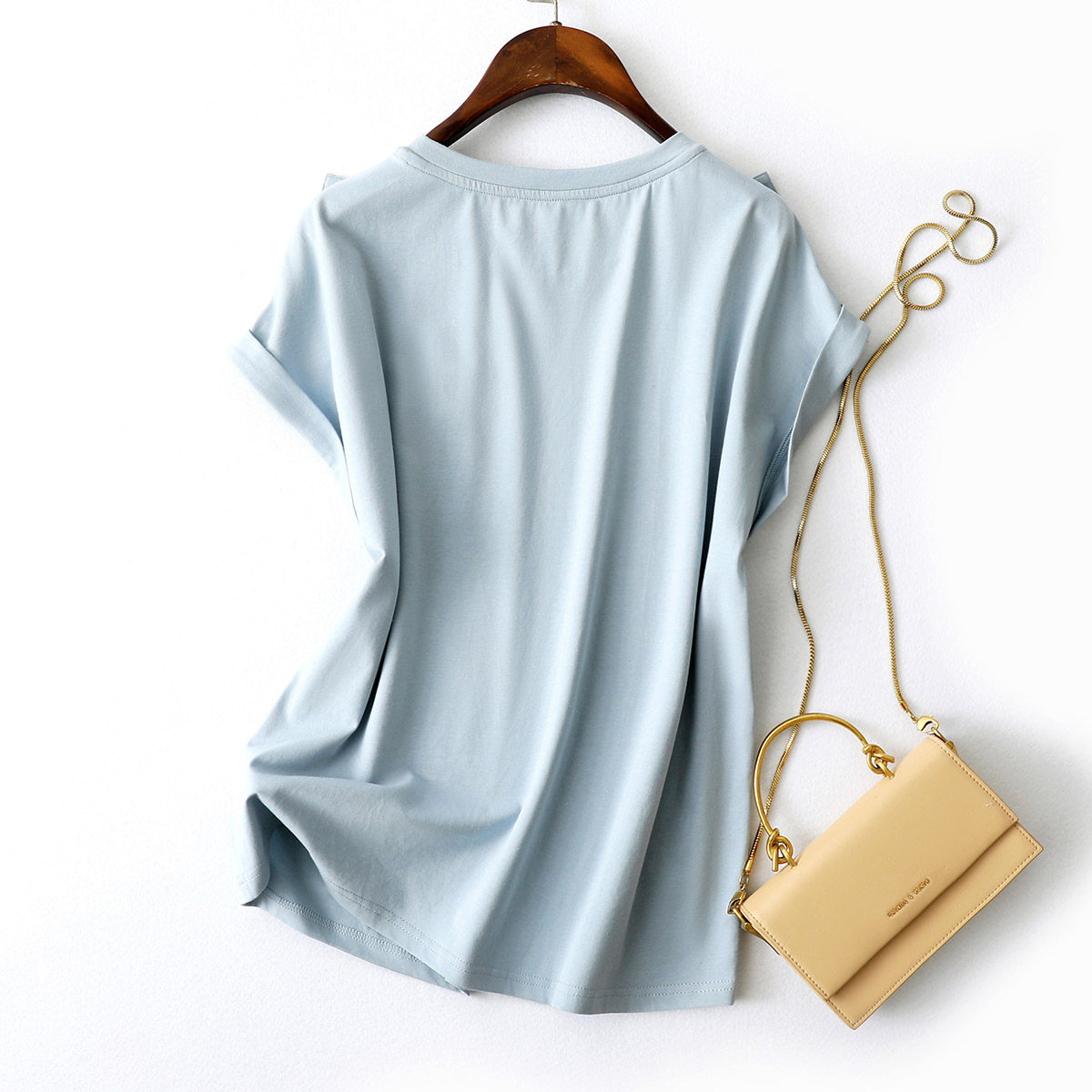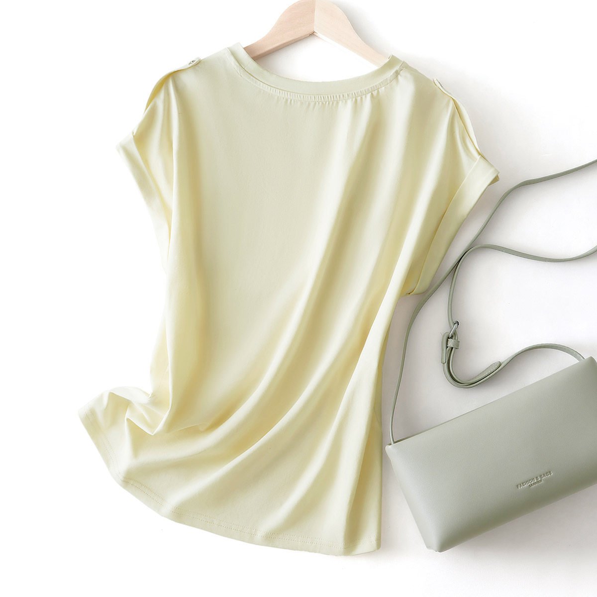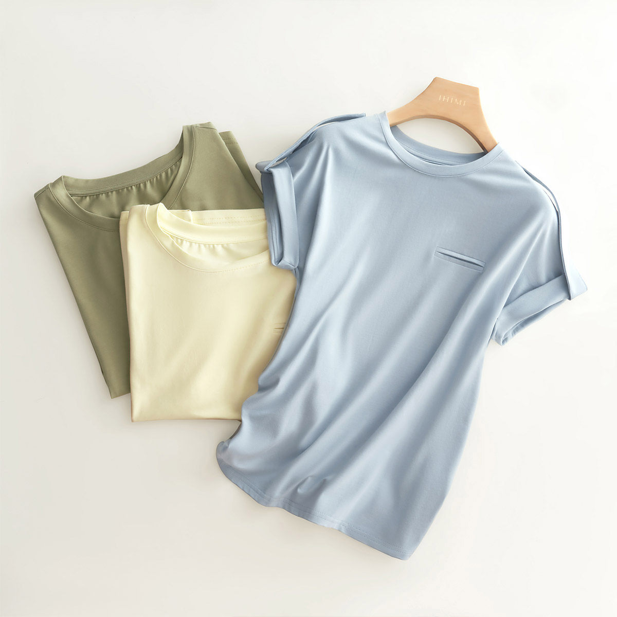IHIMI短袖纯色上衣女款2026夏季新款时尚内搭简约小衫休闲外穿T恤