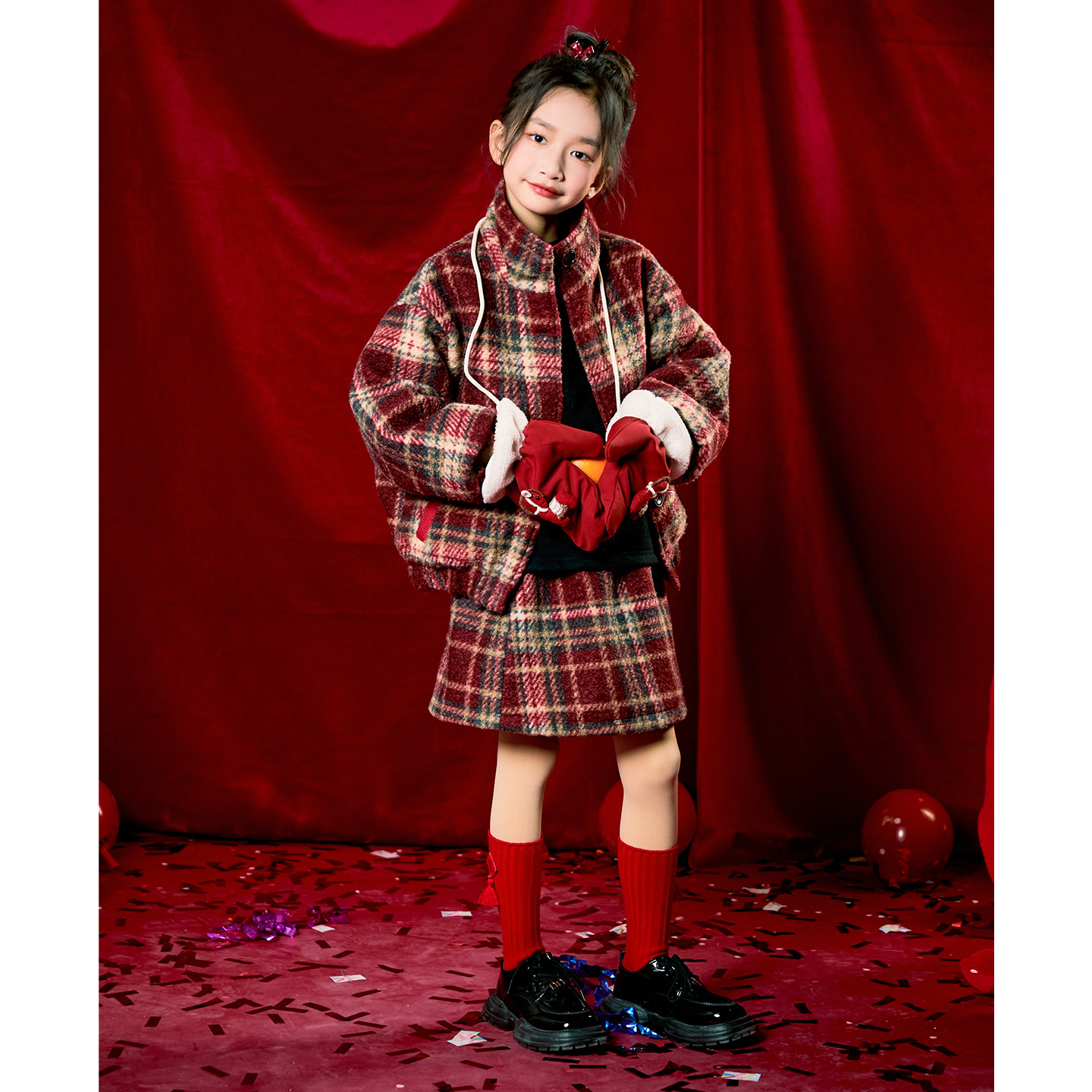 女童新年服套装裙2026新款新儿童拜年服红色喜庆超好看裙子两件套