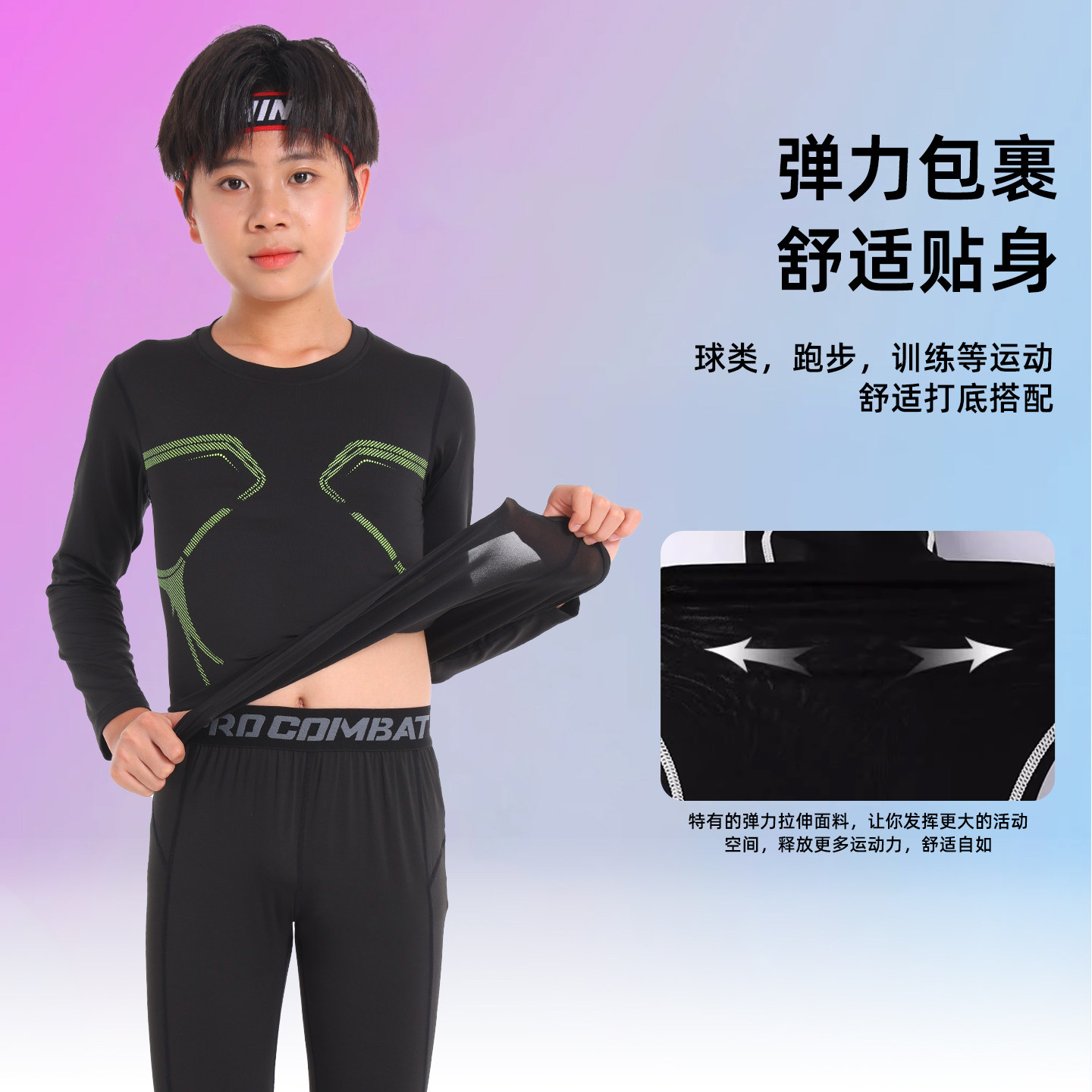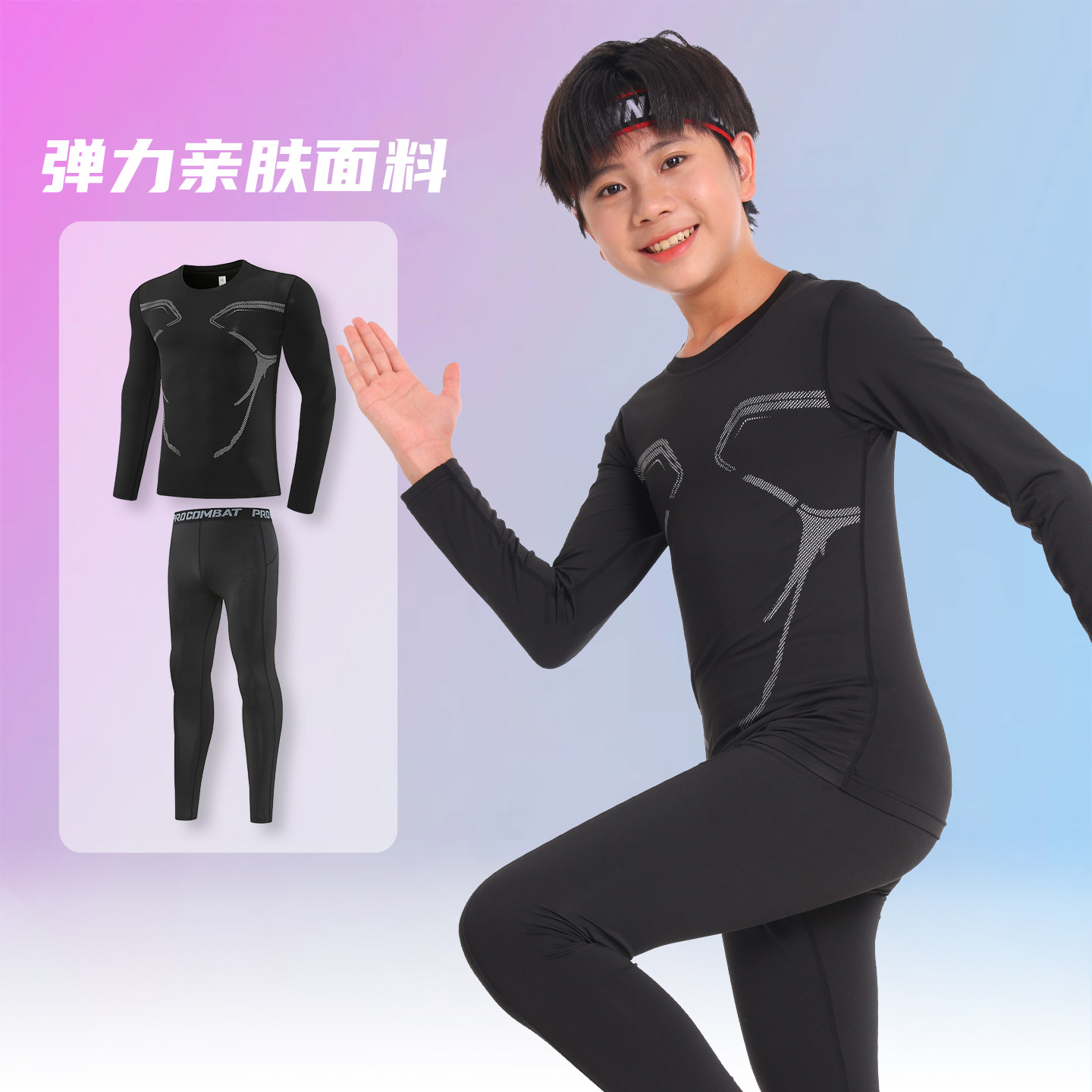 冬季儿童篮球服男童打底内搭紧身衣蓝球运动衣服女童足球比赛球衣