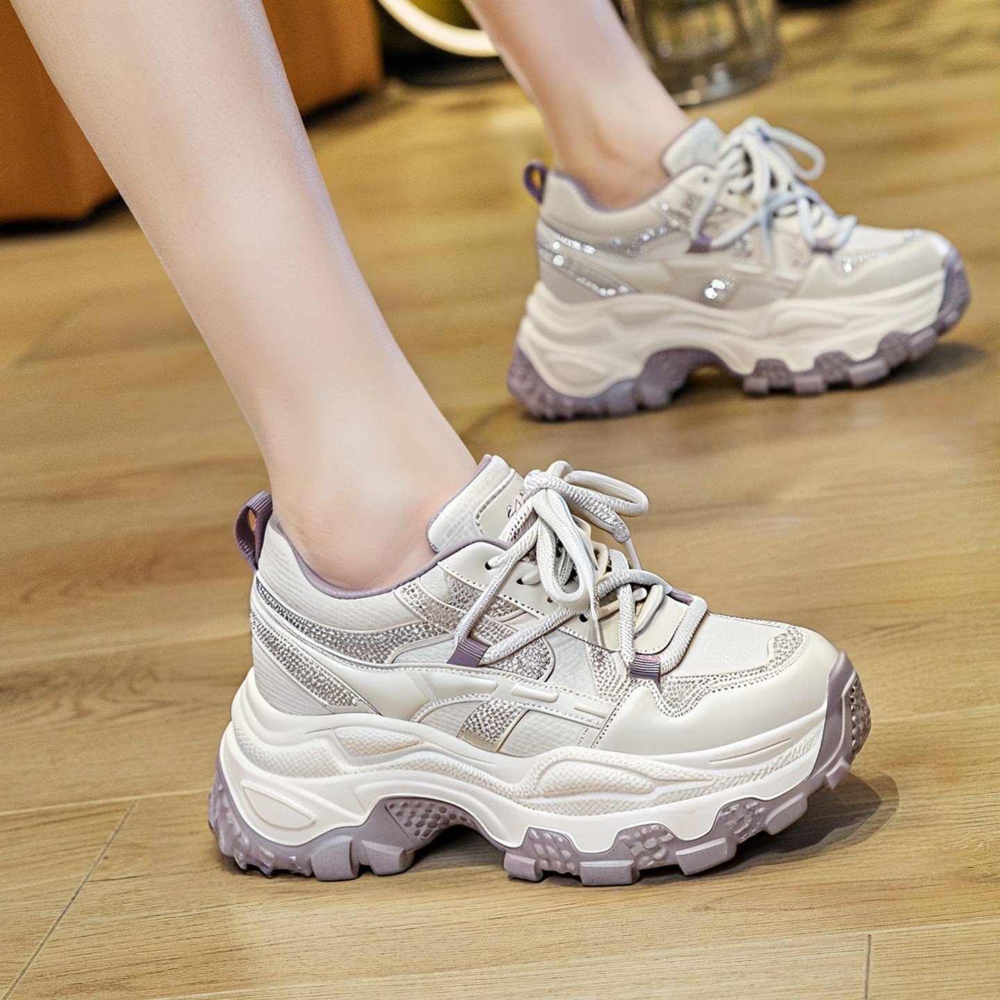 超轻软底老爹鞋女款2026新款春季内增高8cm厚底运动休闲鞋小个子