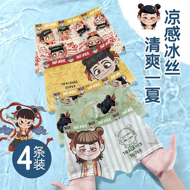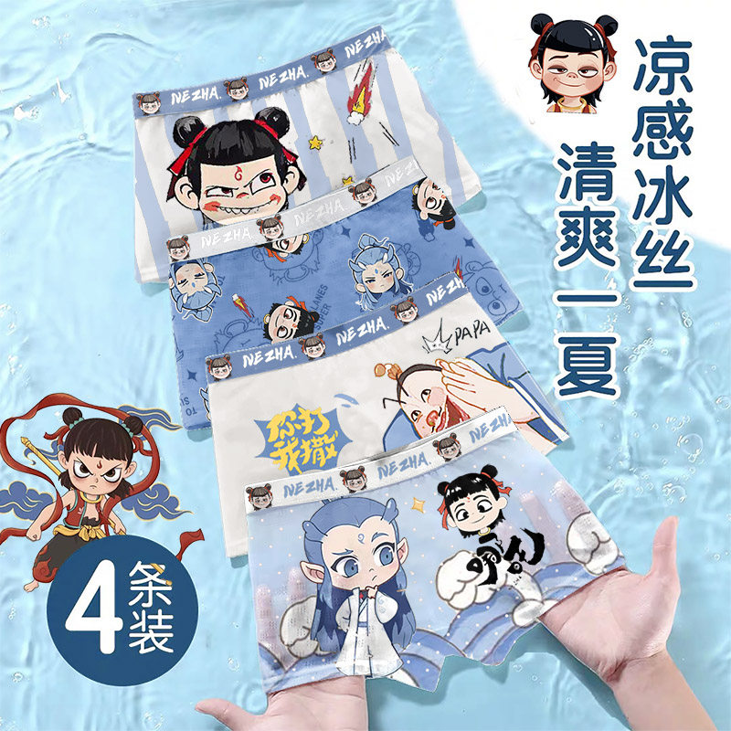 凉快冰丝网孔儿童内裤男童平角不夹pp莫代尔哪吒小孩大童四角短裤