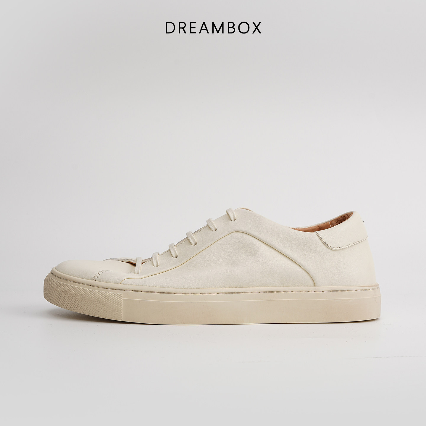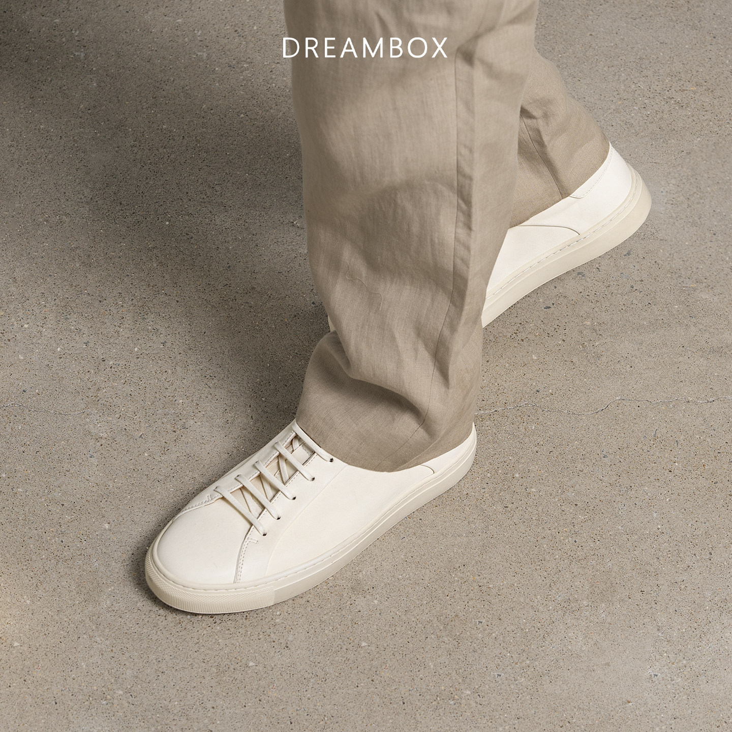 DREAMBOX钧博夏季透气薄款小白鞋石洗马皮软底休闲板鞋极简风男鞋