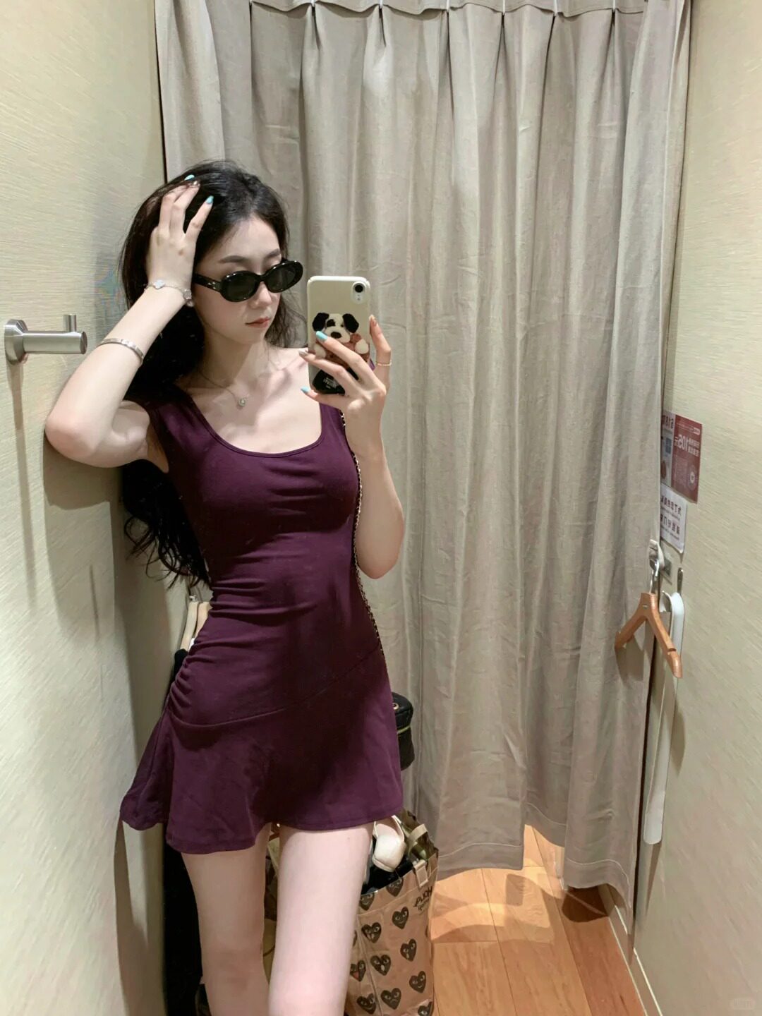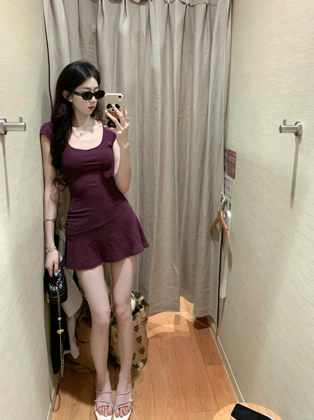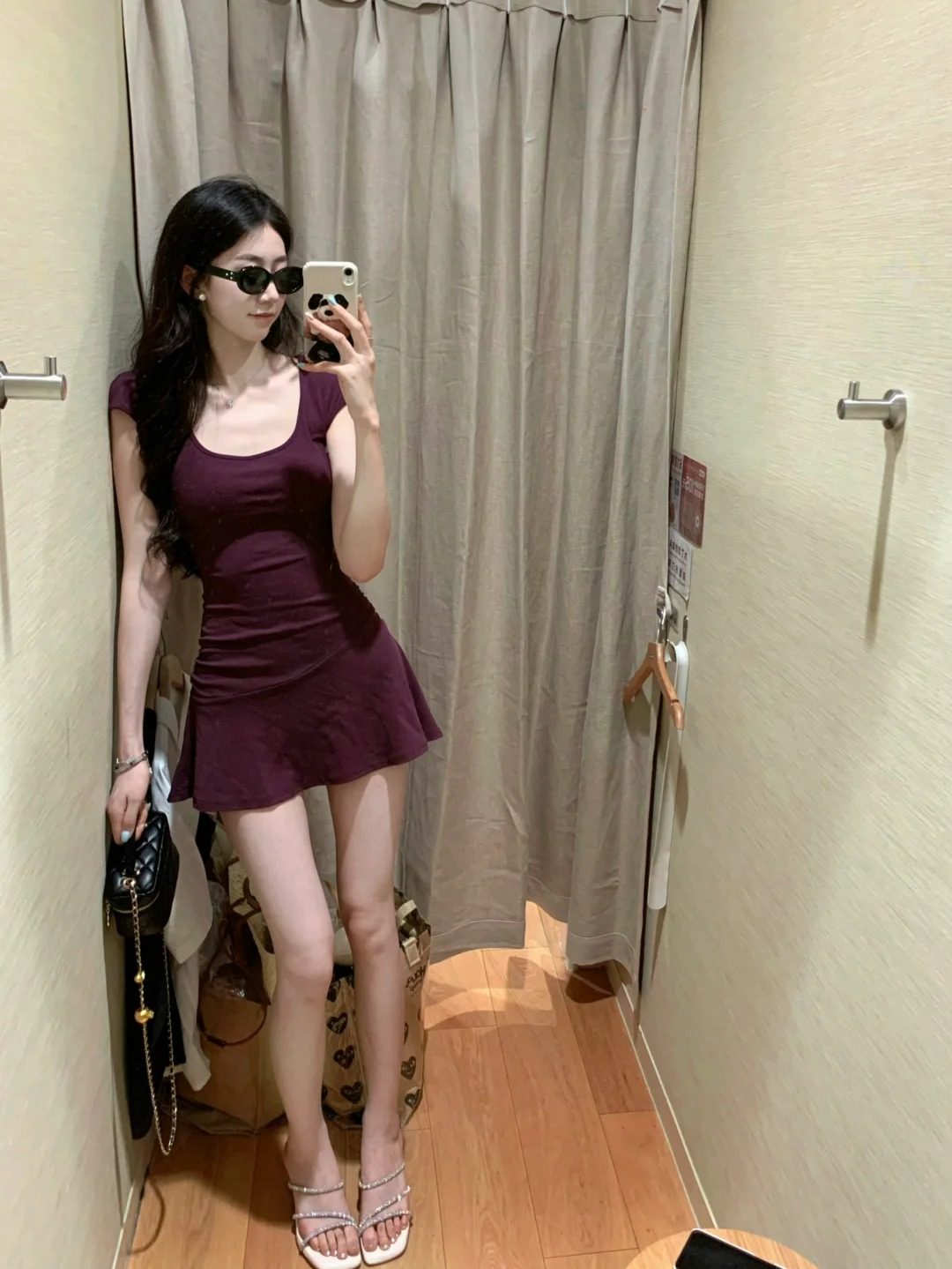 纯欲风紫色U领短袖连衣裙女夏季性感辣妹修身收腰显瘦A字短款裙子