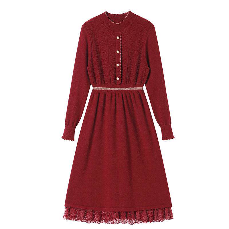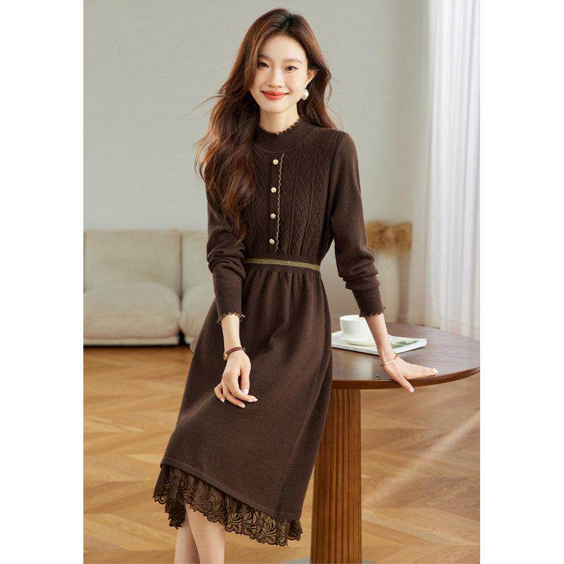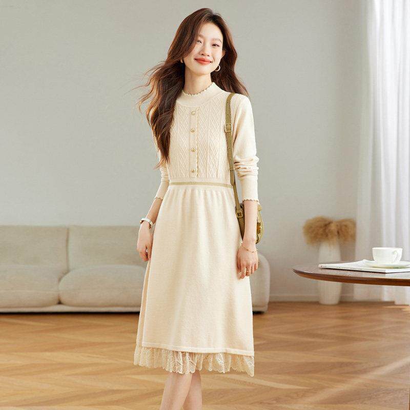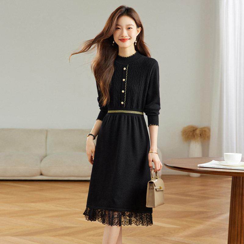 秋冬配大衣的内搭连衣裙2024年新款轻奢高级感羊毛针织打底毛衣裙