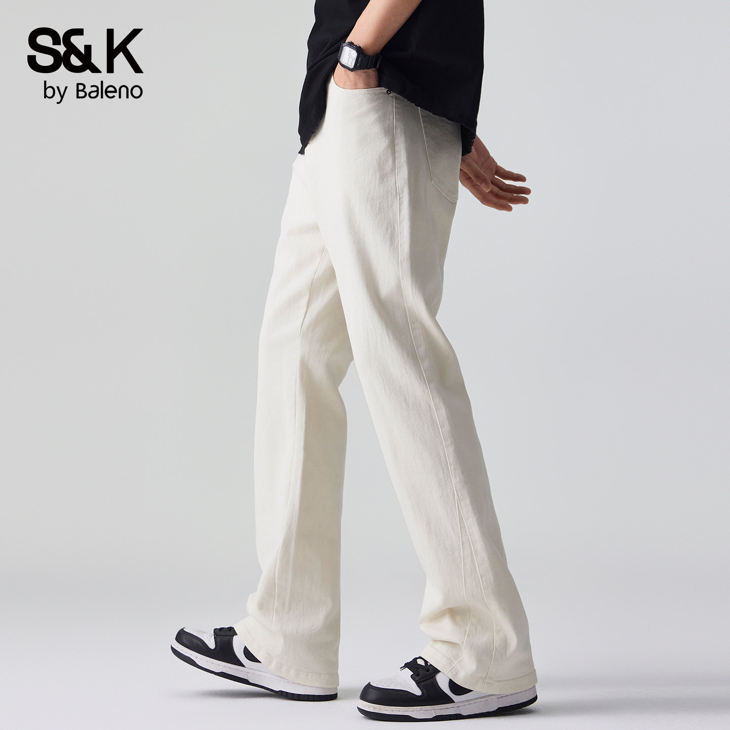 班尼路美式高街白色牛仔裤男2026新款夏季微喇潮牌直筒休闲长裤YS