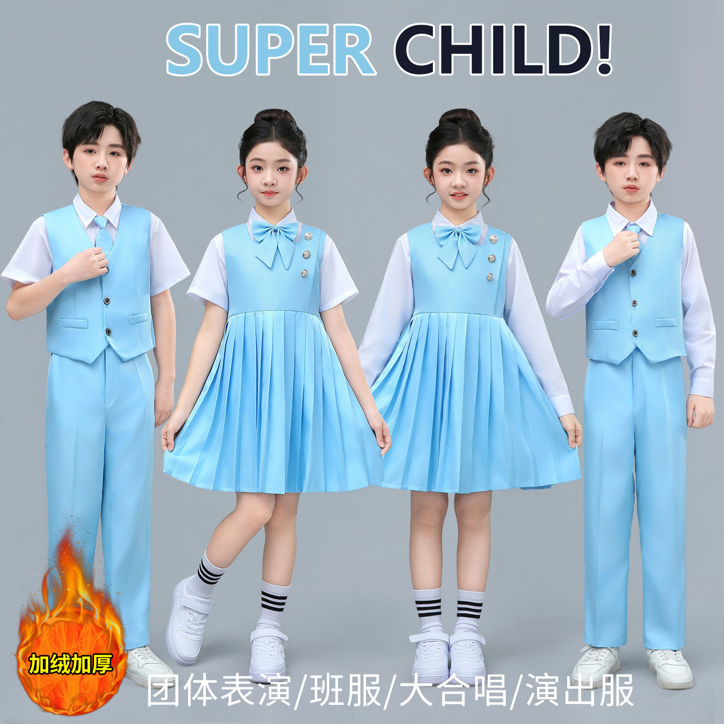 儿童合唱演出服男女童蓝色学院风中小学生演讲比赛礼服装诗歌朗诵