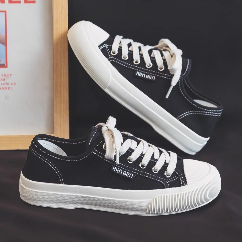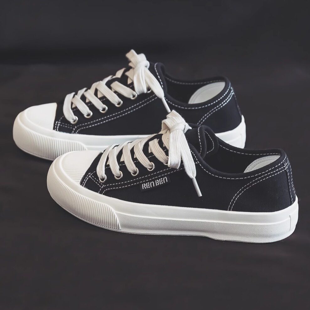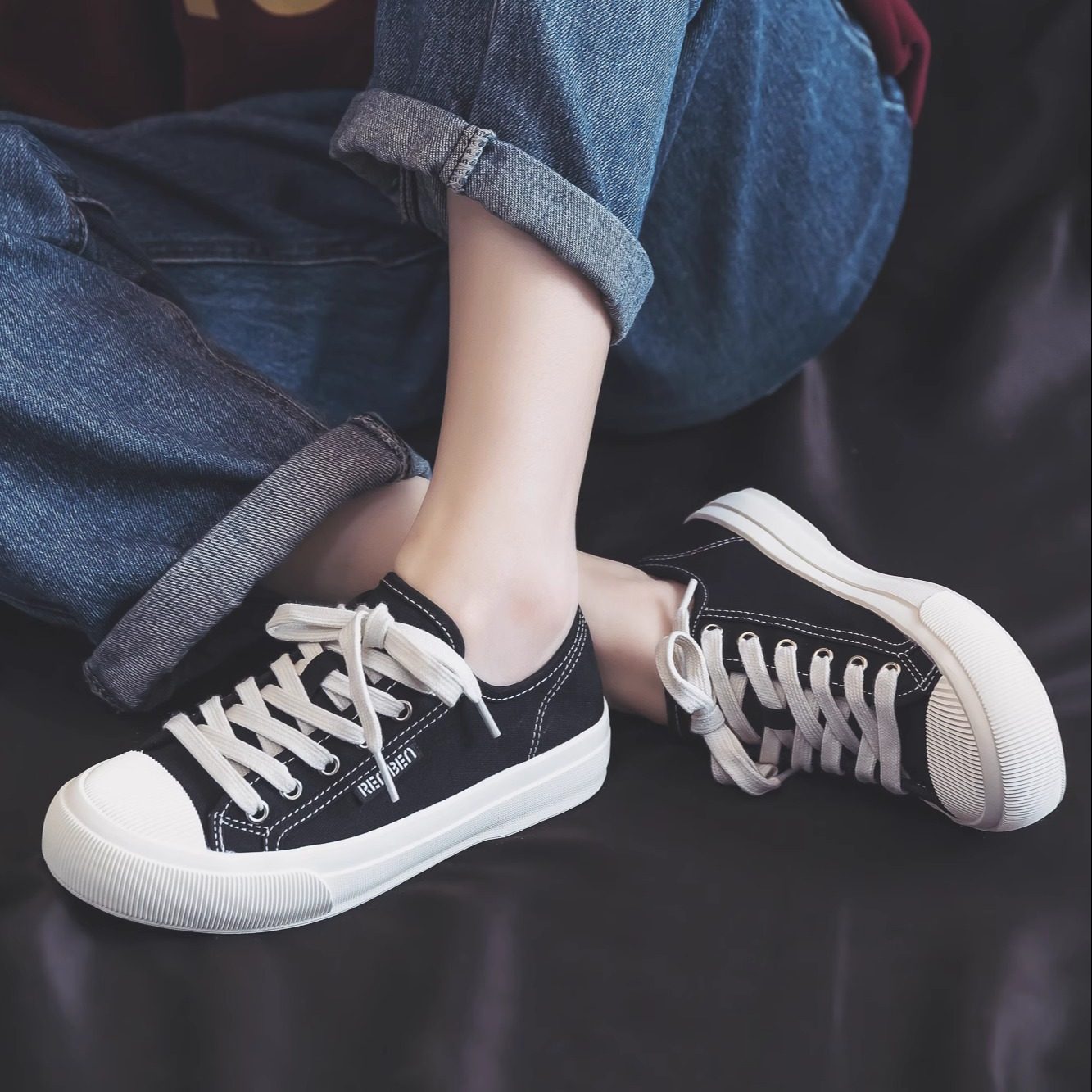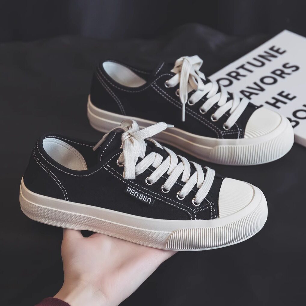 人本透气帆布鞋女款2026夏季新款黑色休闲板鞋软底轻便薄款女鞋子