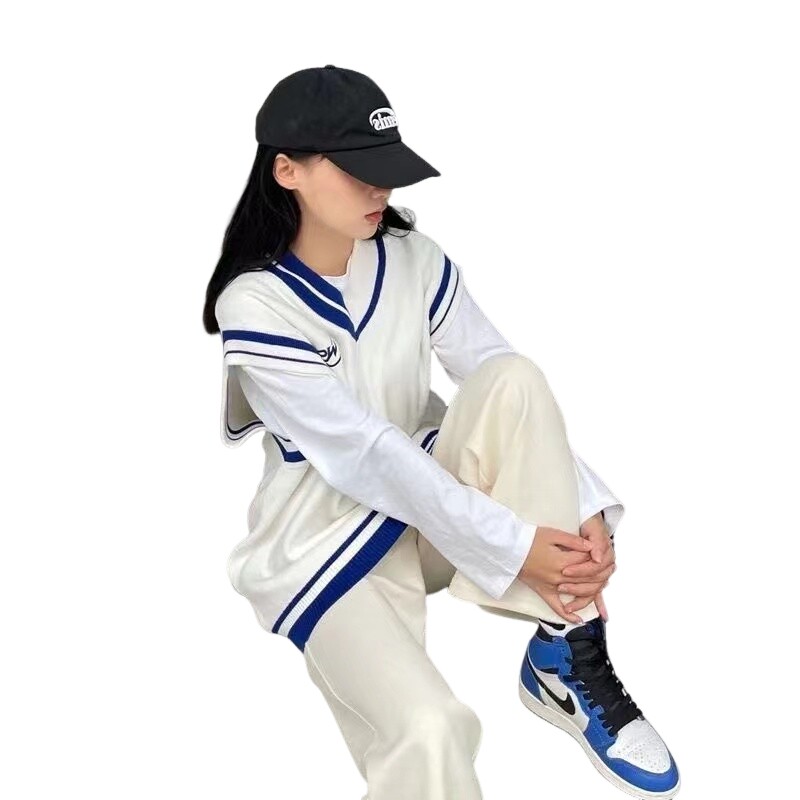 针织马甲女款2025新品春季叠穿背心内搭白色圆领打底衫套装上衣