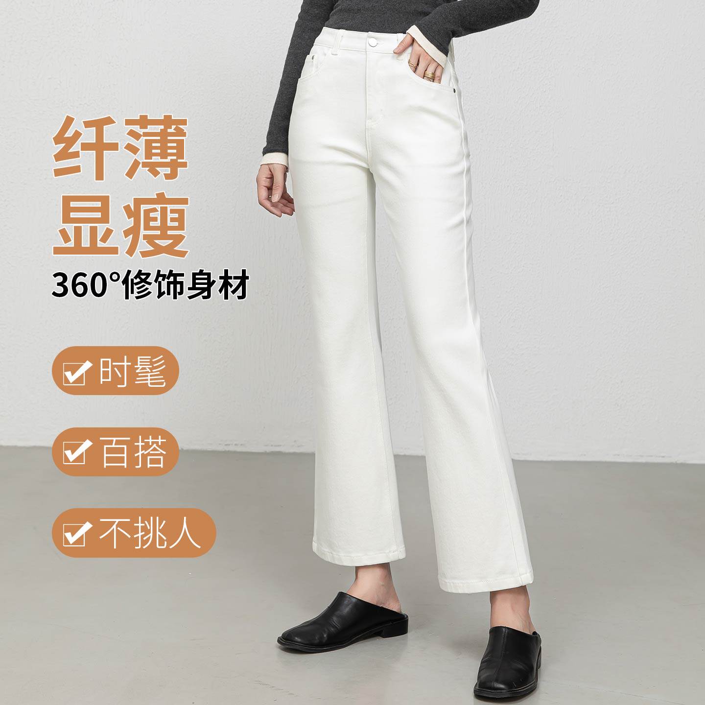 白色牛仔微喇裤女九分2026春秋季新款高腰显瘦直筒喇叭小个子裤子