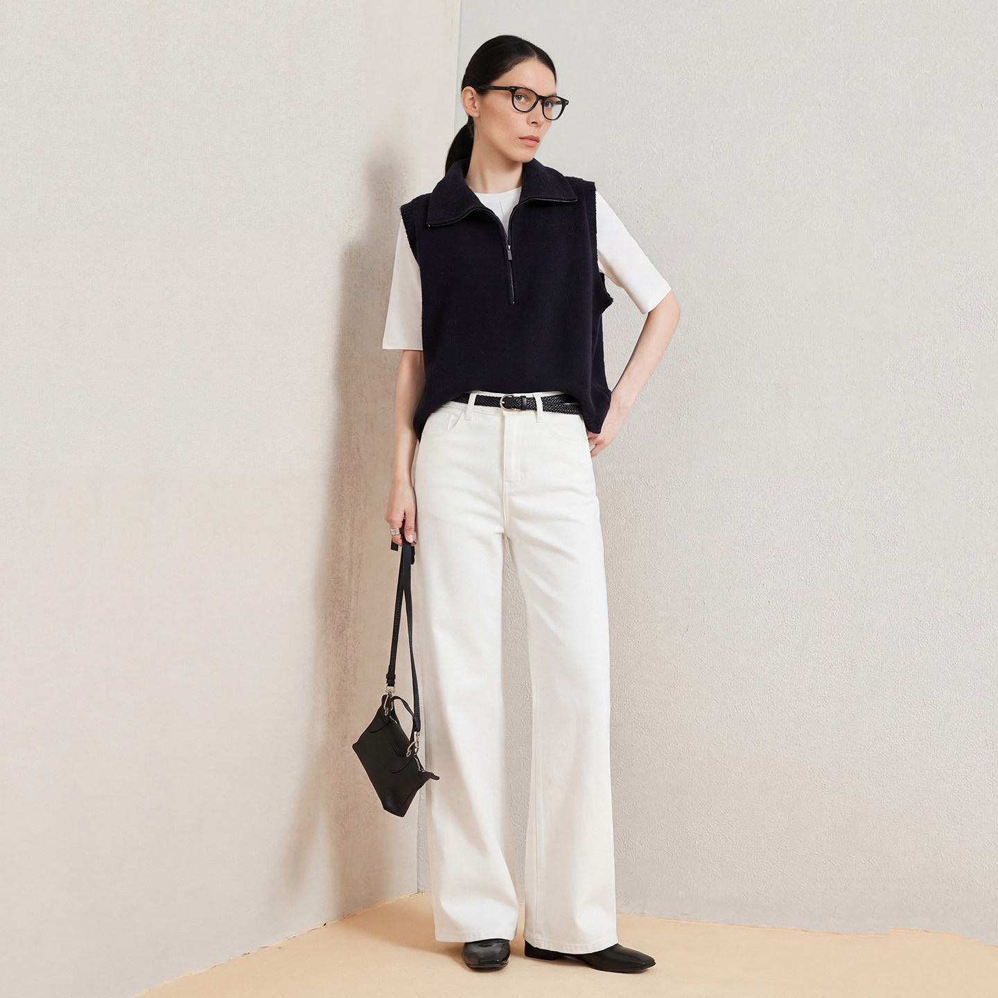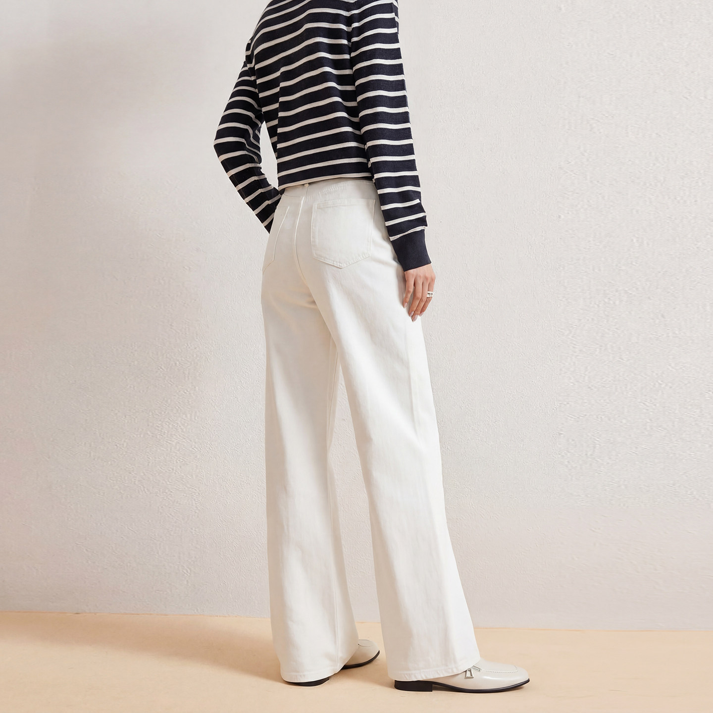 JLIAN 白色微喇梨形直筒牛仔裤女2026年新款四面弹高腰超模喇叭裤