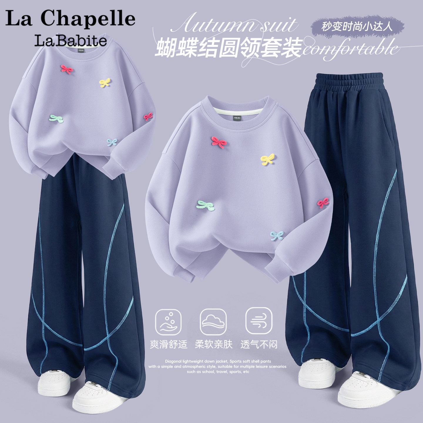 拉夏贝尔女童套装2026新款童装春秋款粉色洋气卫衣儿童春装运动服