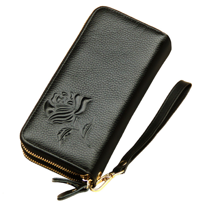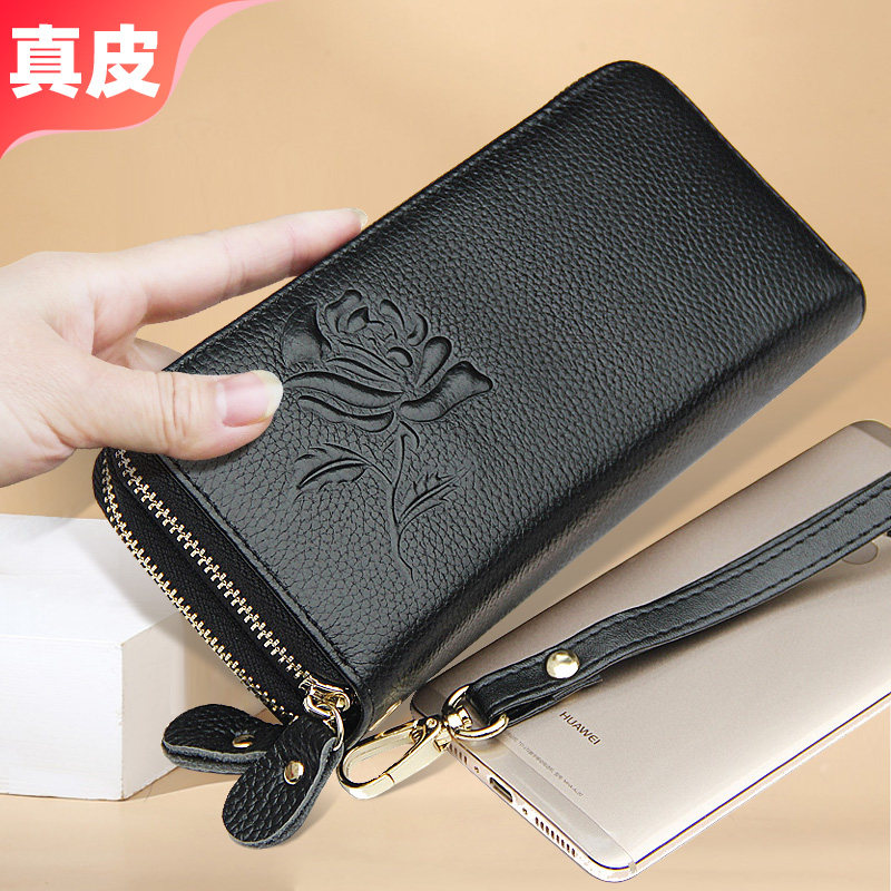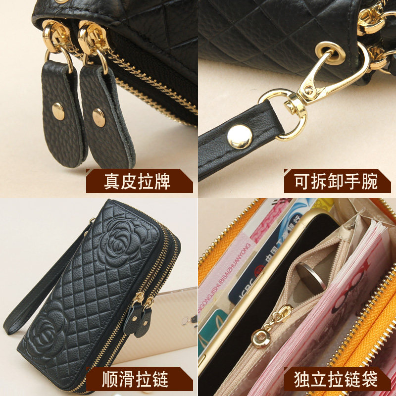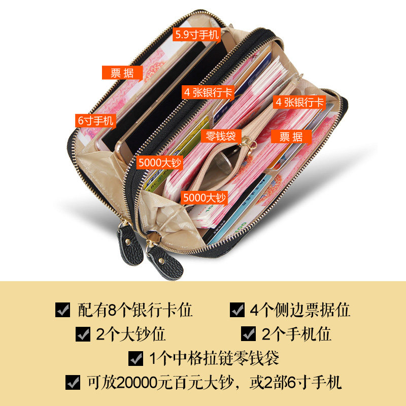 黄色钱包女长款真皮招财新款女式皮夹大容量手包双拉链钱夹手机包