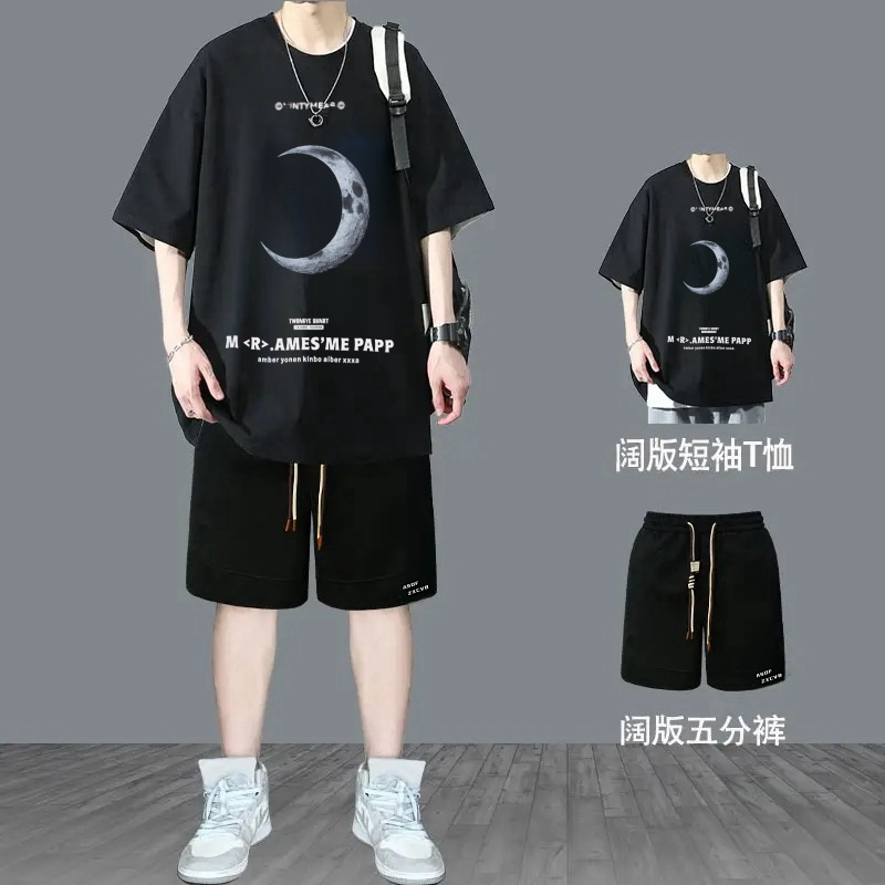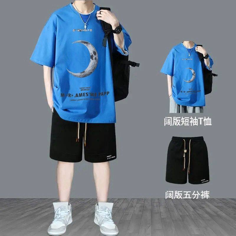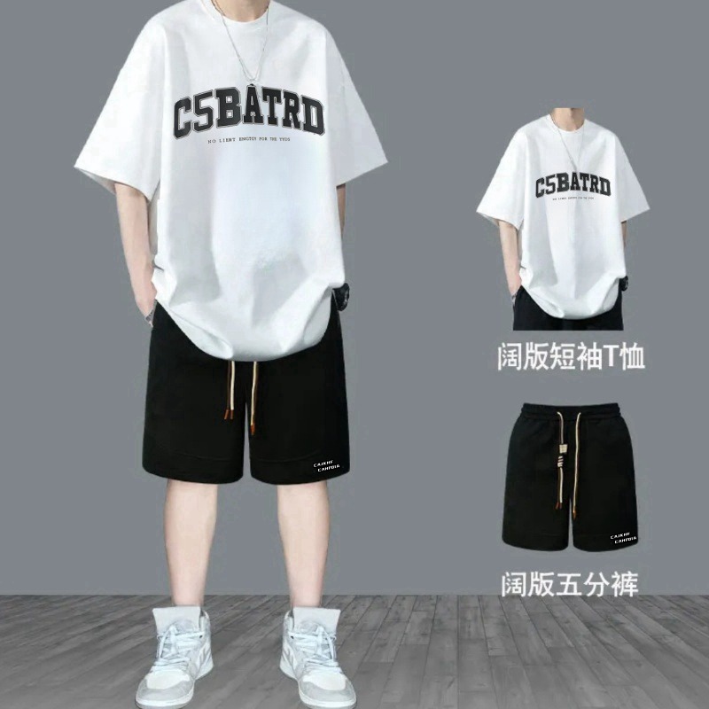 青少年纯棉运动服套装新款初中学生宽松帅气男生夏季t潮牌短袖T恤