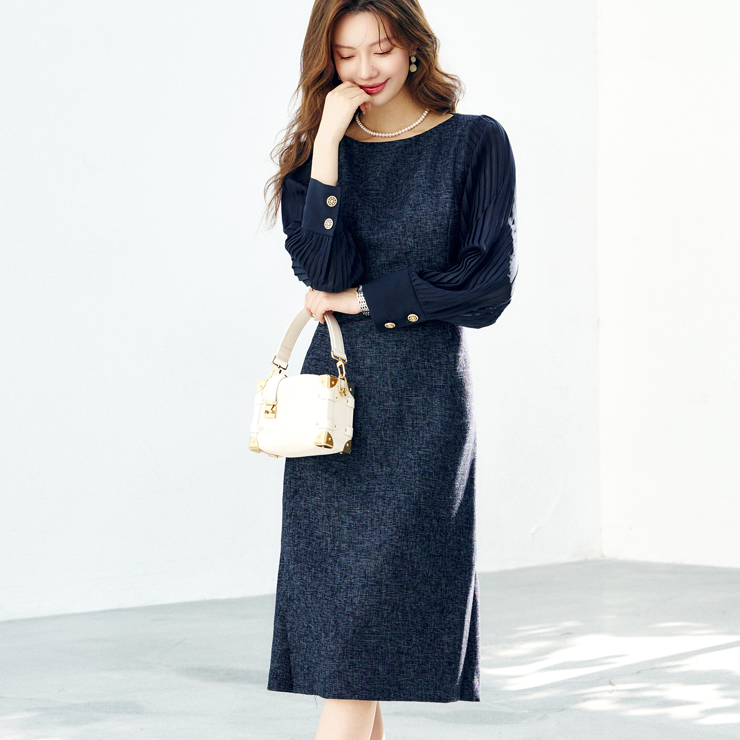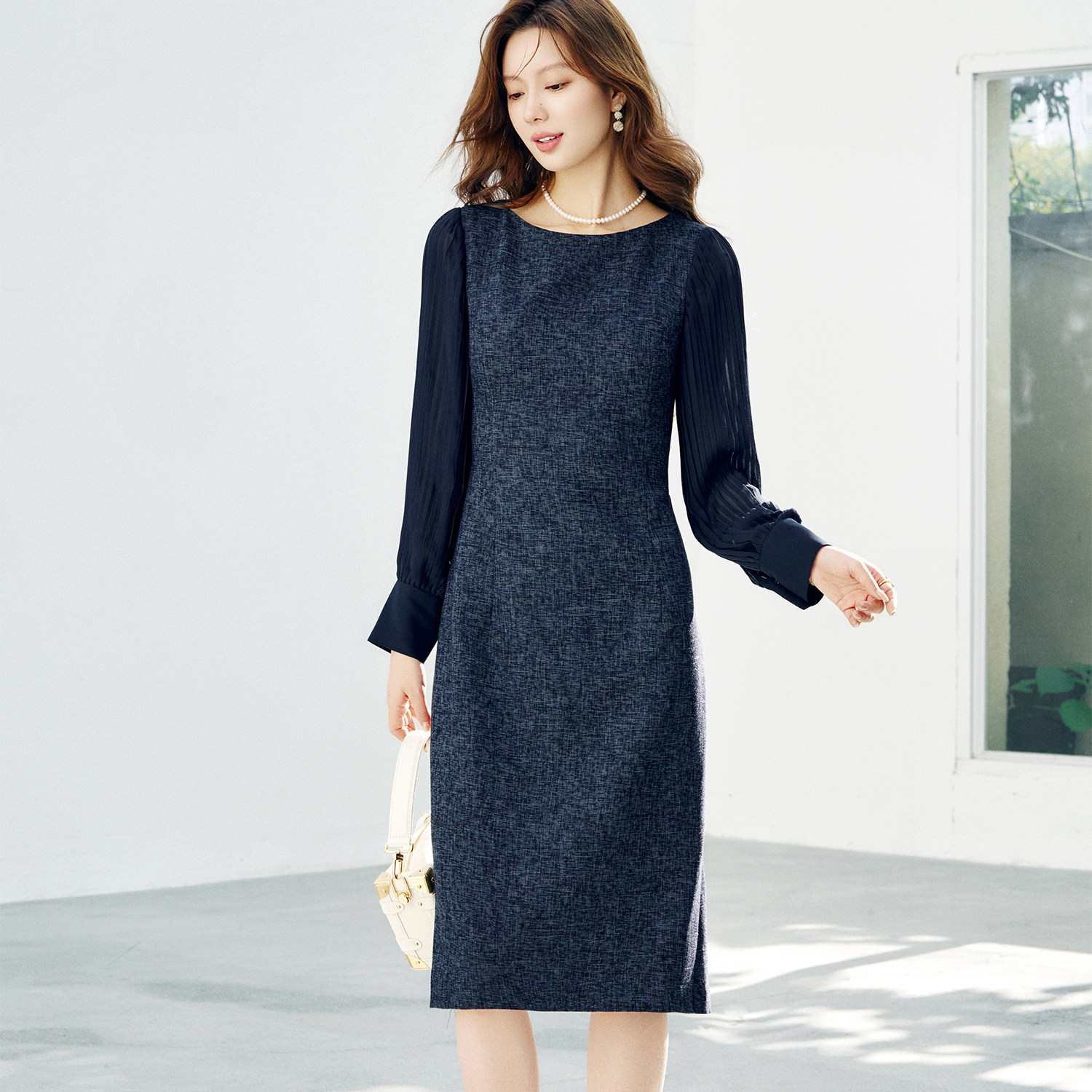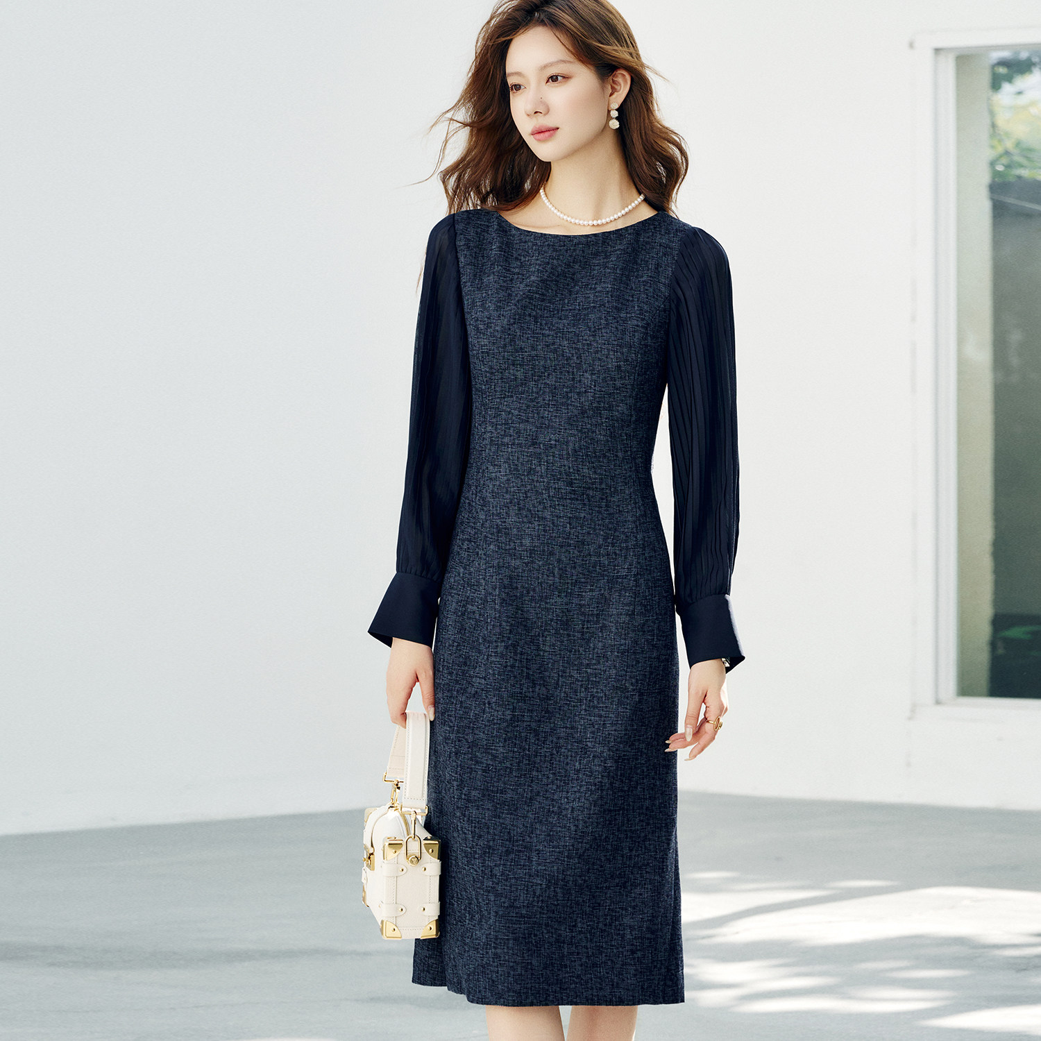 OFFIY-高贵千金 压褶雪纺气质显瘦高级26春夏新款漂亮战袍连衣裙