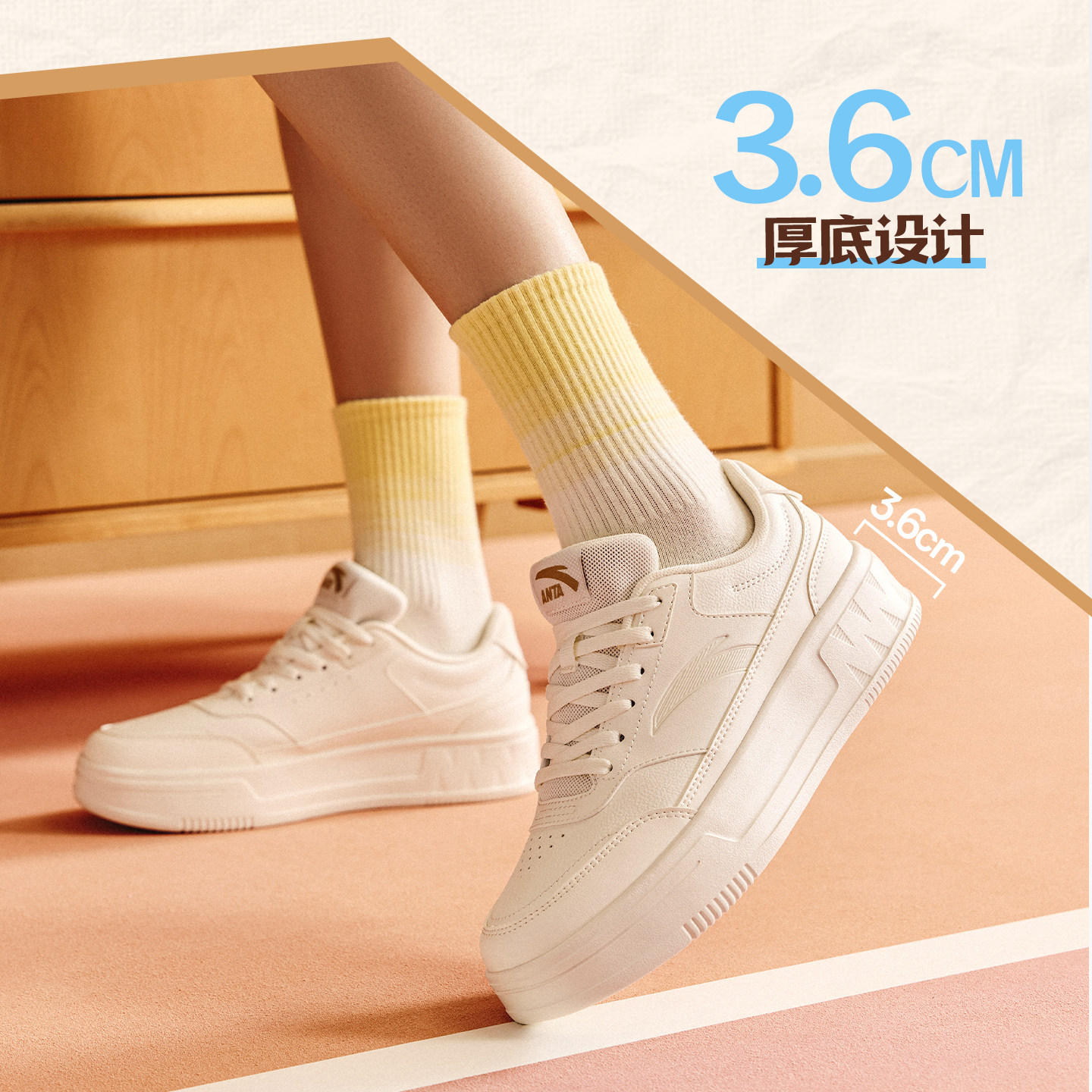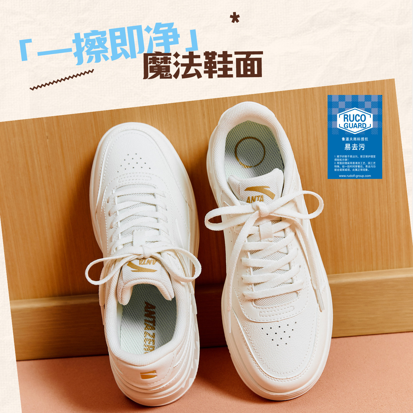 安踏易清洁小白鞋女鞋夏季厚底低帮板鞋学生青少年舒适耐磨运动鞋