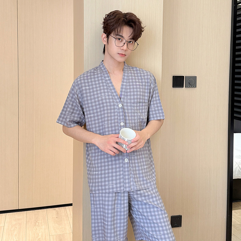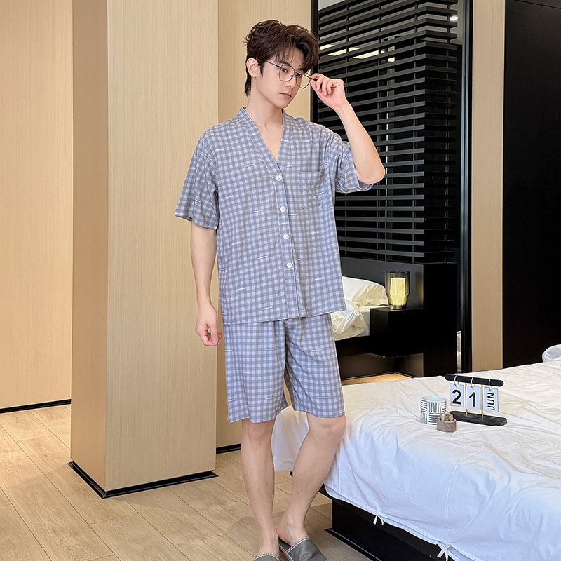 2026年新款夏季薄款棉绸睡衣男士短袖短裤家居服加大码人造棉套装