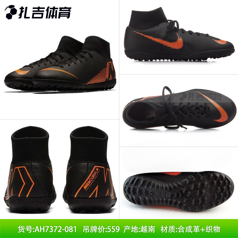 扎吉体育Nike耐克刺客12中端高帮碎钉TF人工草男足球鞋AH7372-801
