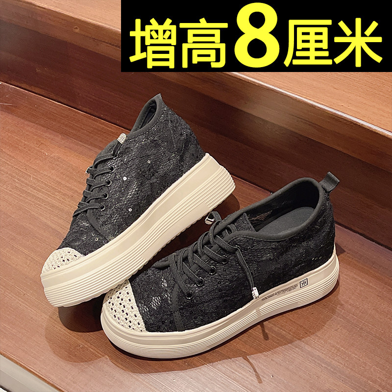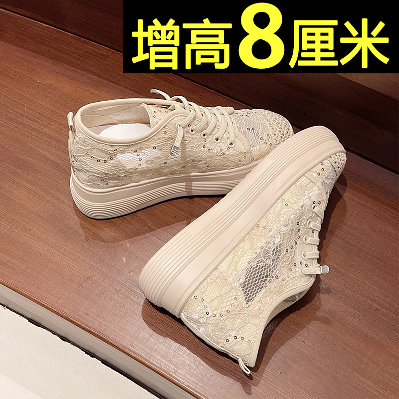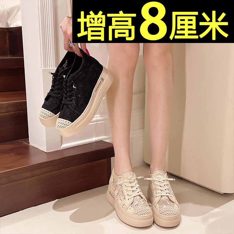 渔夫鞋女2026新款夏季透气网面一脚蹬休闲厚底小个子内增高女鞋