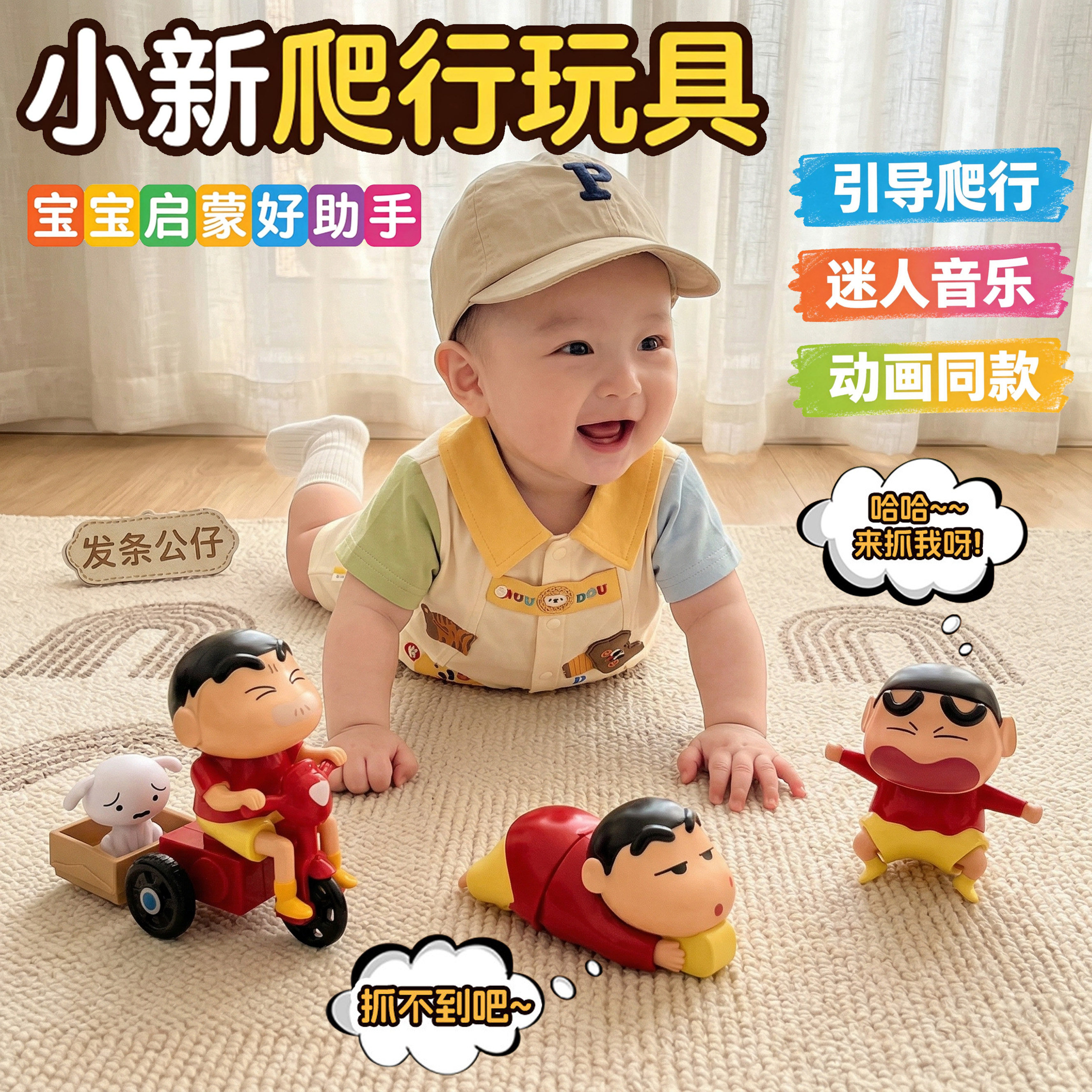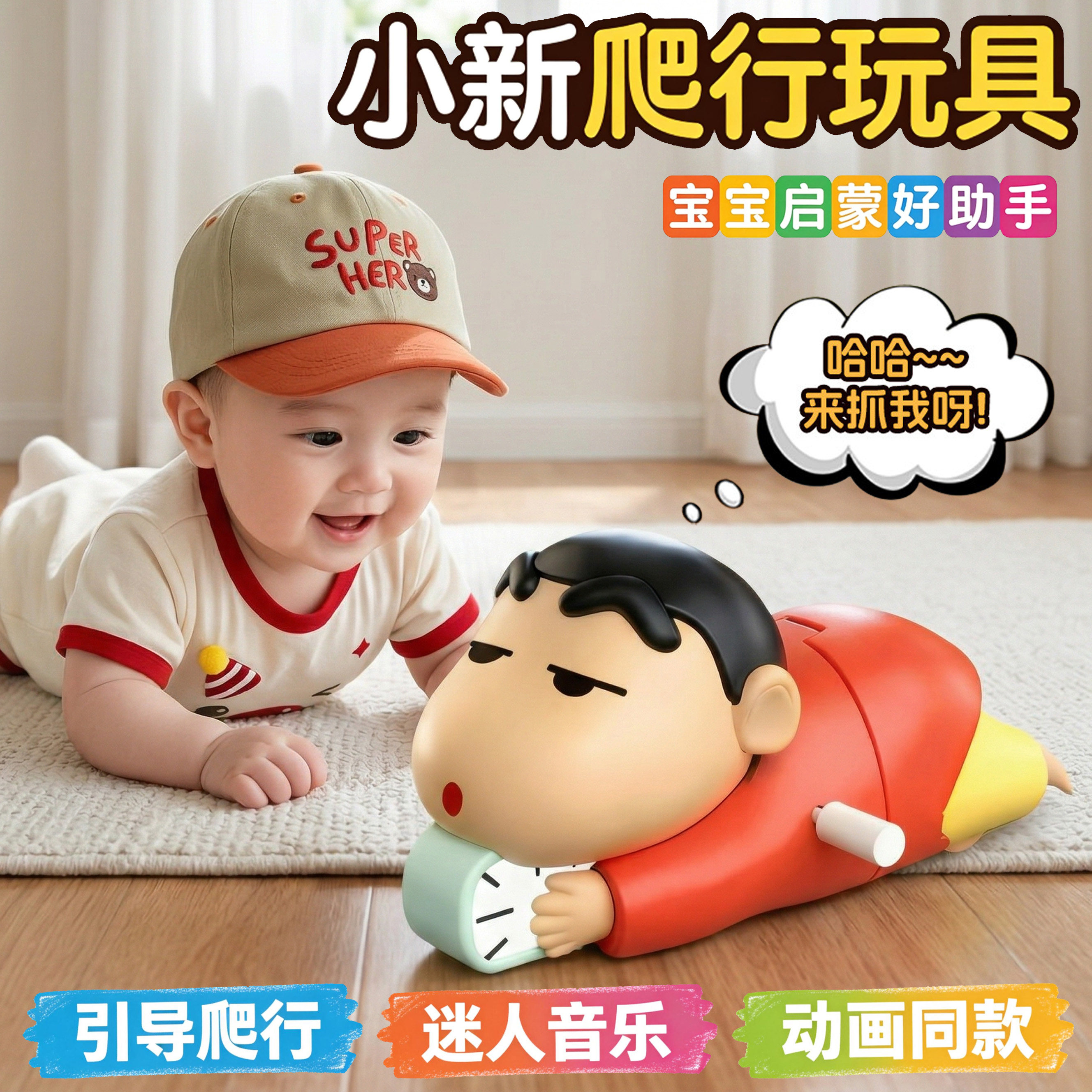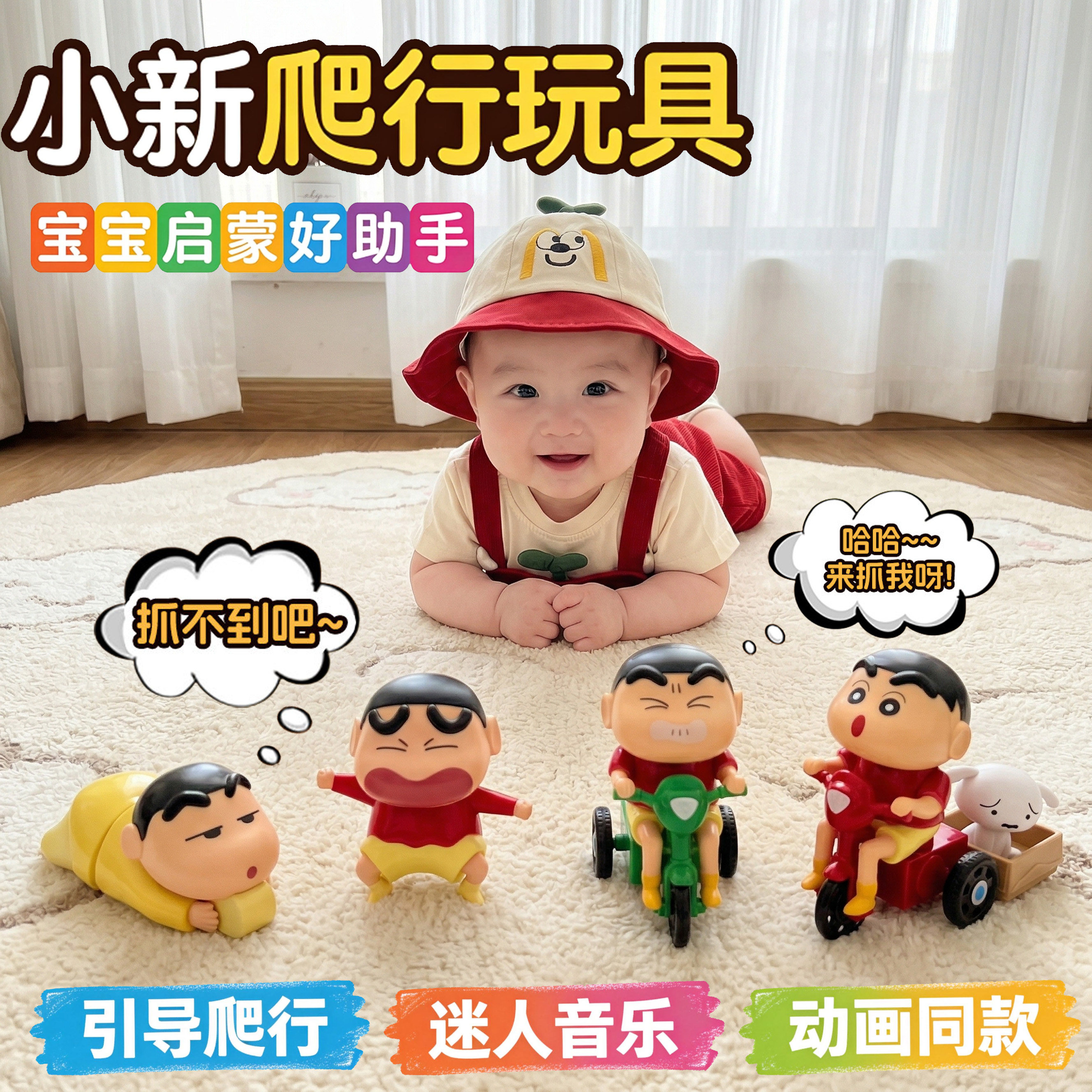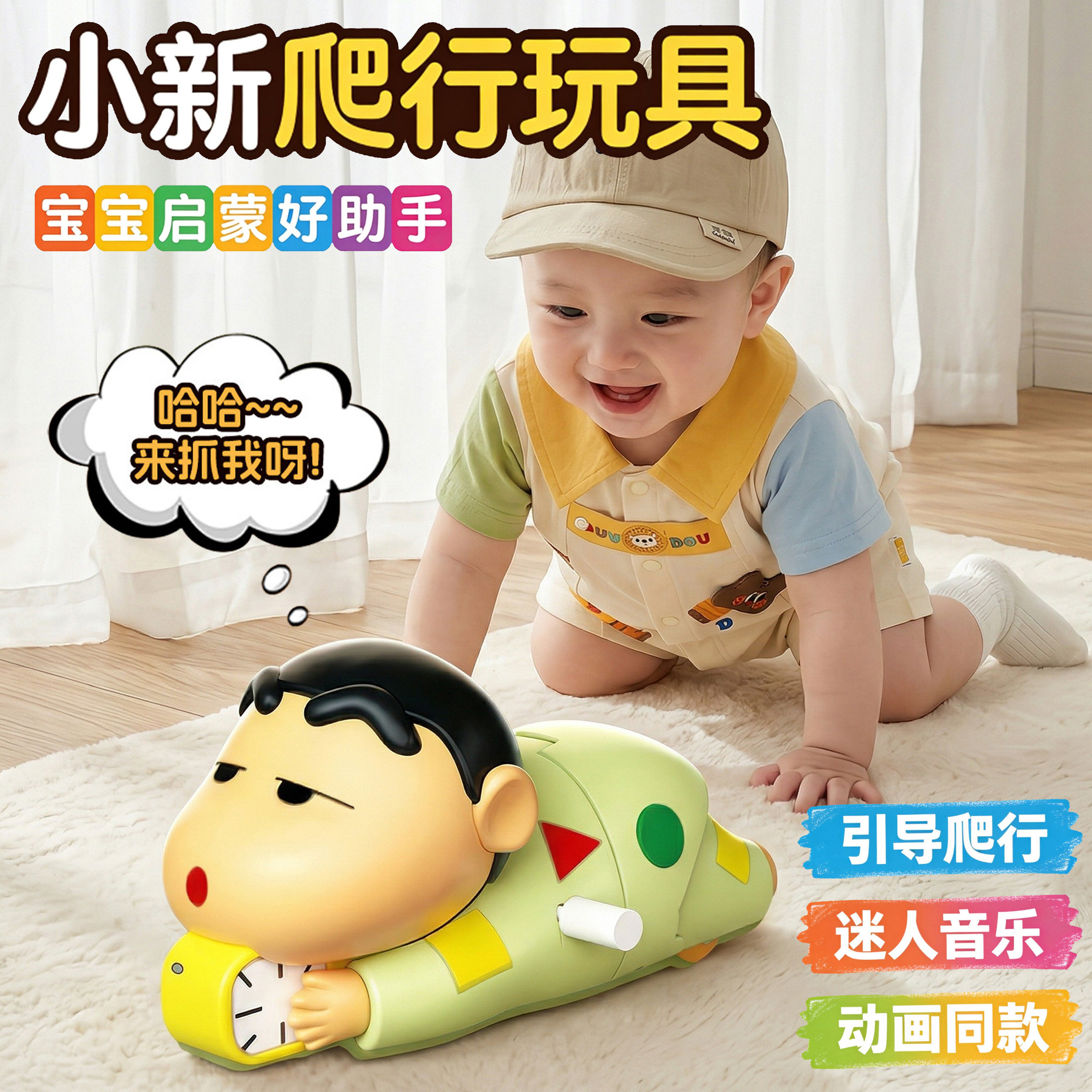 蜡笔小新爬行玩具婴儿学爬上弦发条玩偶宝宝早教引导抬头训练神器