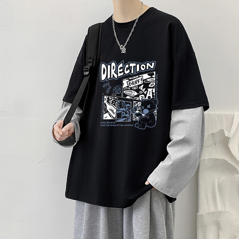 秋季青少年男生长袖t恤男潮流潮牌高中初中学生上衣服纯棉春秋款
