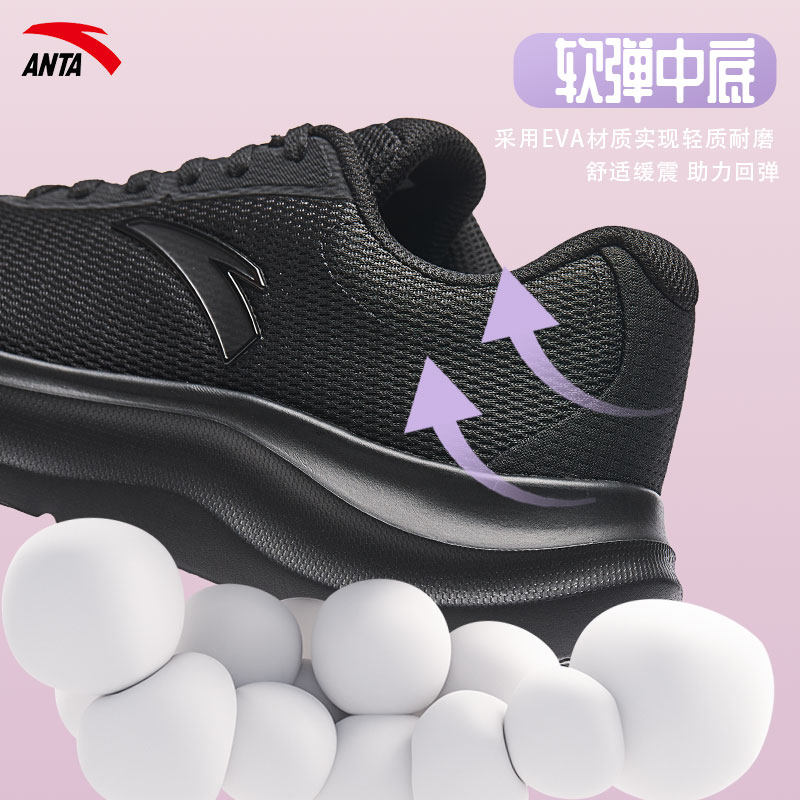 安踏女鞋运动鞋女款黑色鞋子2026夏季新款官方旗舰透气软底跑步鞋