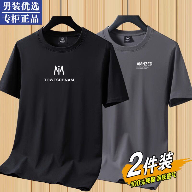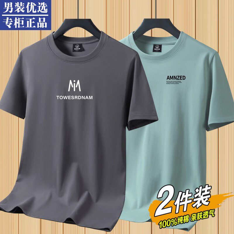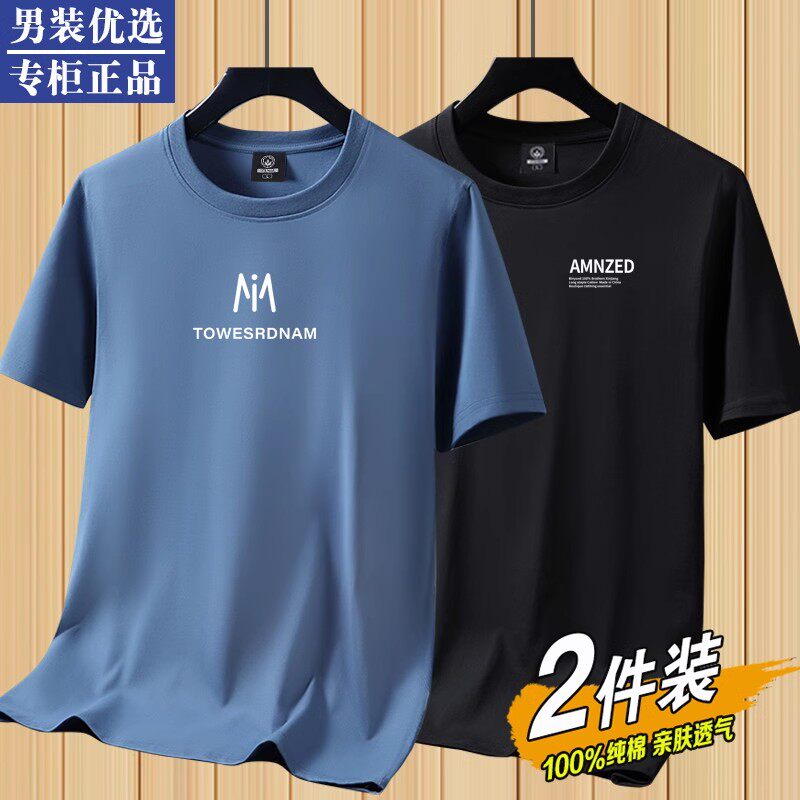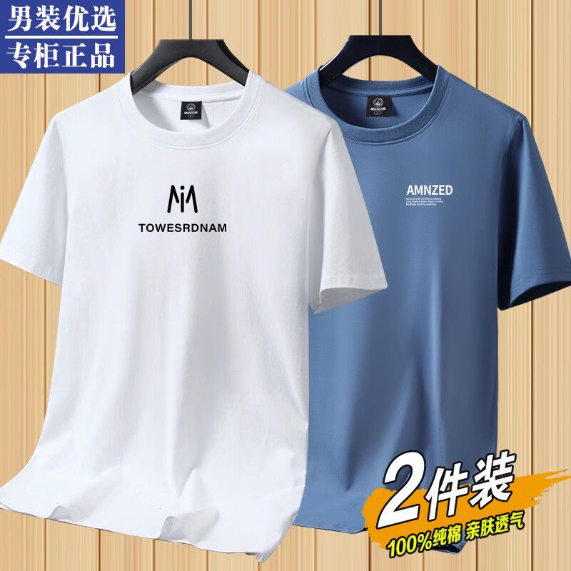 2件夏季100%纯棉短袖T恤男休闲青少年半袖男女款新疆棉体恤打底衫
