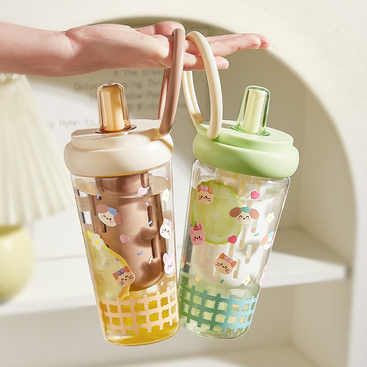 高硼硅玻璃杯女水杯子随行杯奶茶花茶果茶吸管咖啡杯带盖便携外带