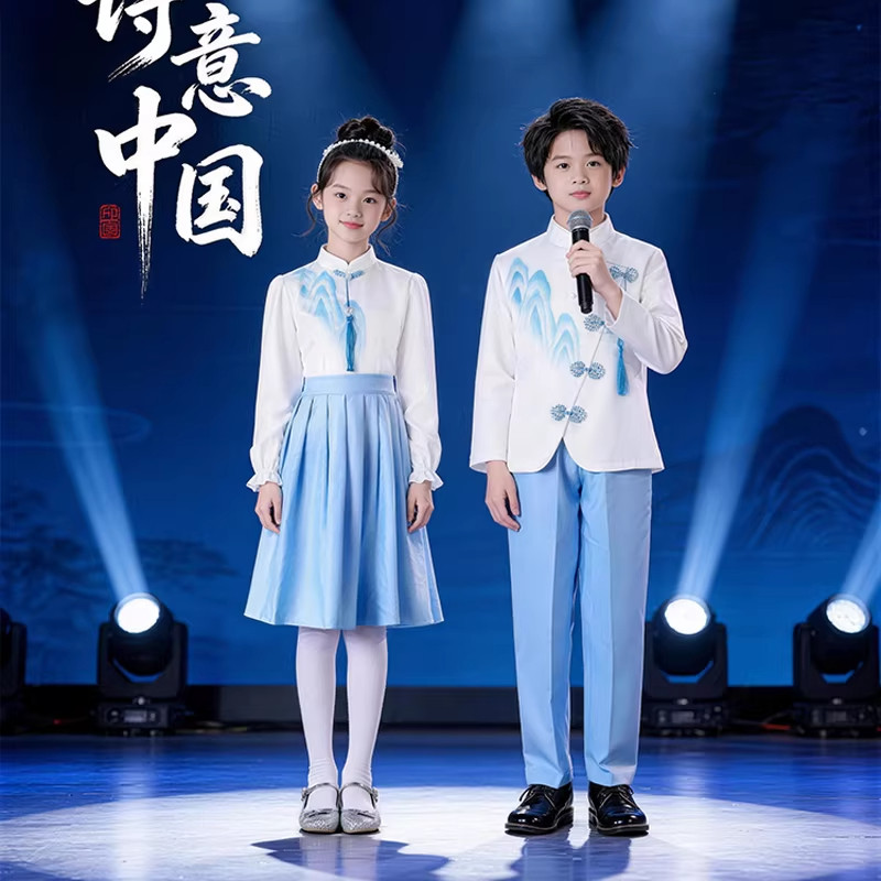 诗歌朗诵大合唱演出服装儿童小学初中高中生表演比赛演讲毕业班服