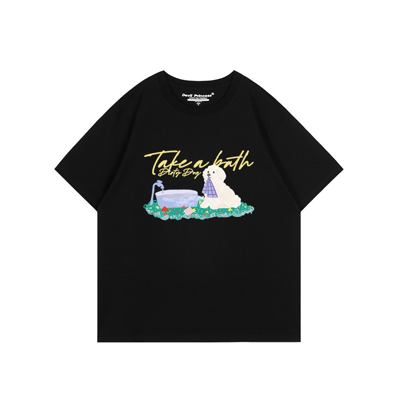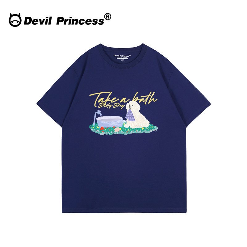 小众可爱风超显白藏蓝色短袖t恤女2026新款宽松减龄纯棉半袖上衣