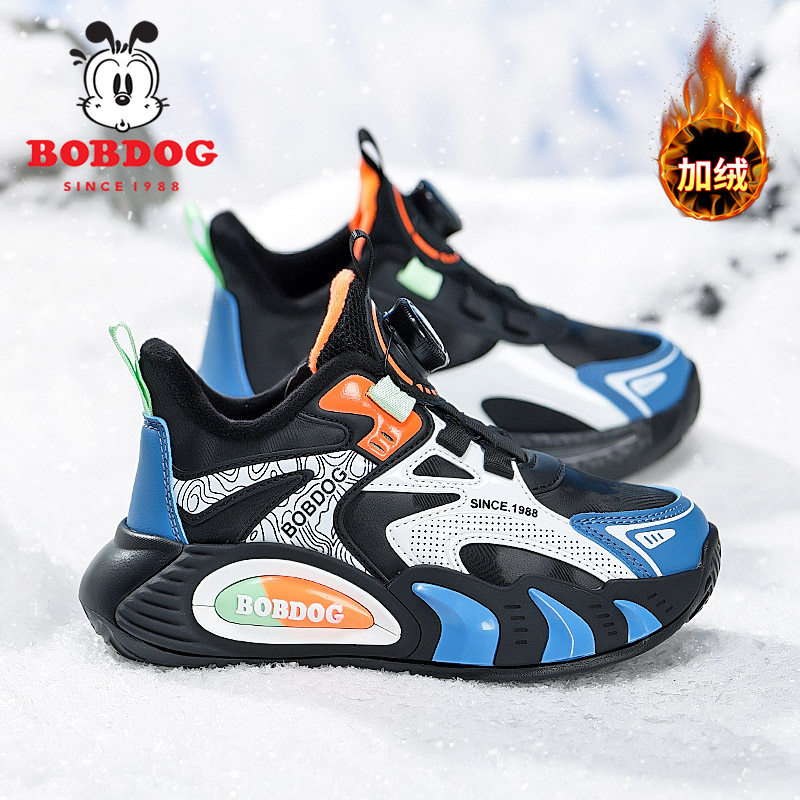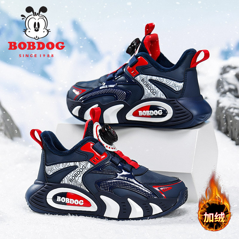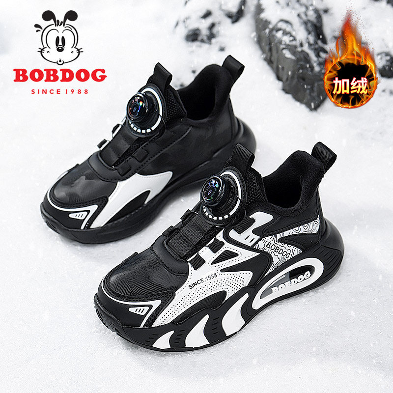 巴布豆男童鞋子2025秋冬季新款加绒保暖小男孩子棉鞋儿童运动鞋