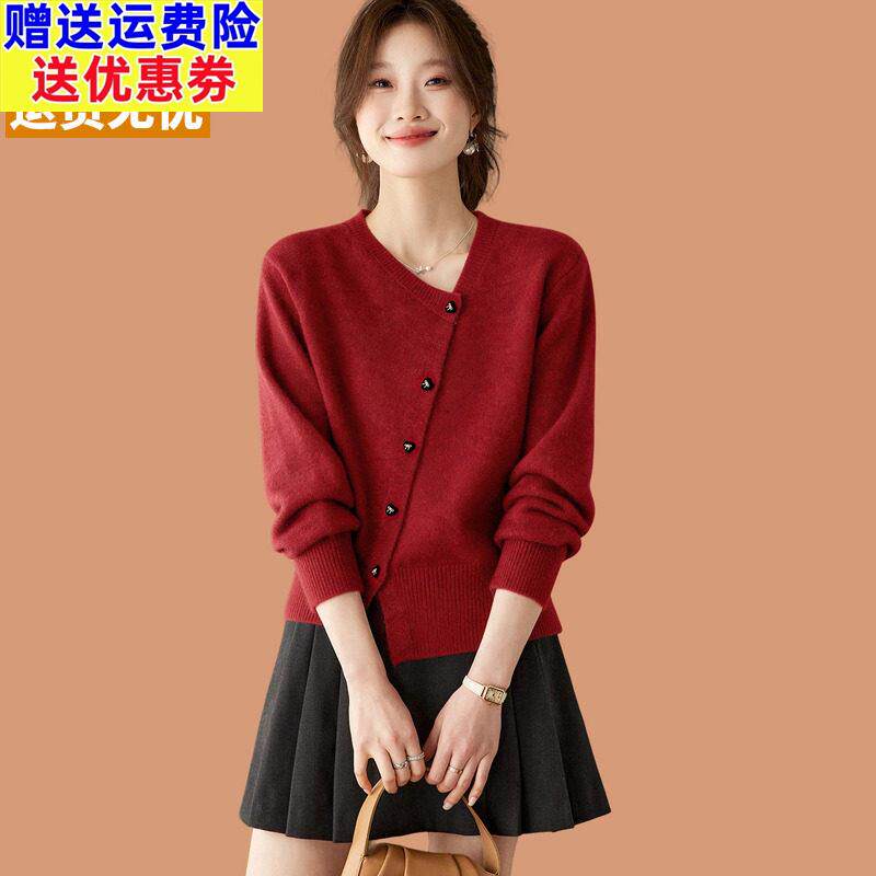 绝美巨好看红色毛衣女款2026新款春季打底衫设计感小众上衣配裙子