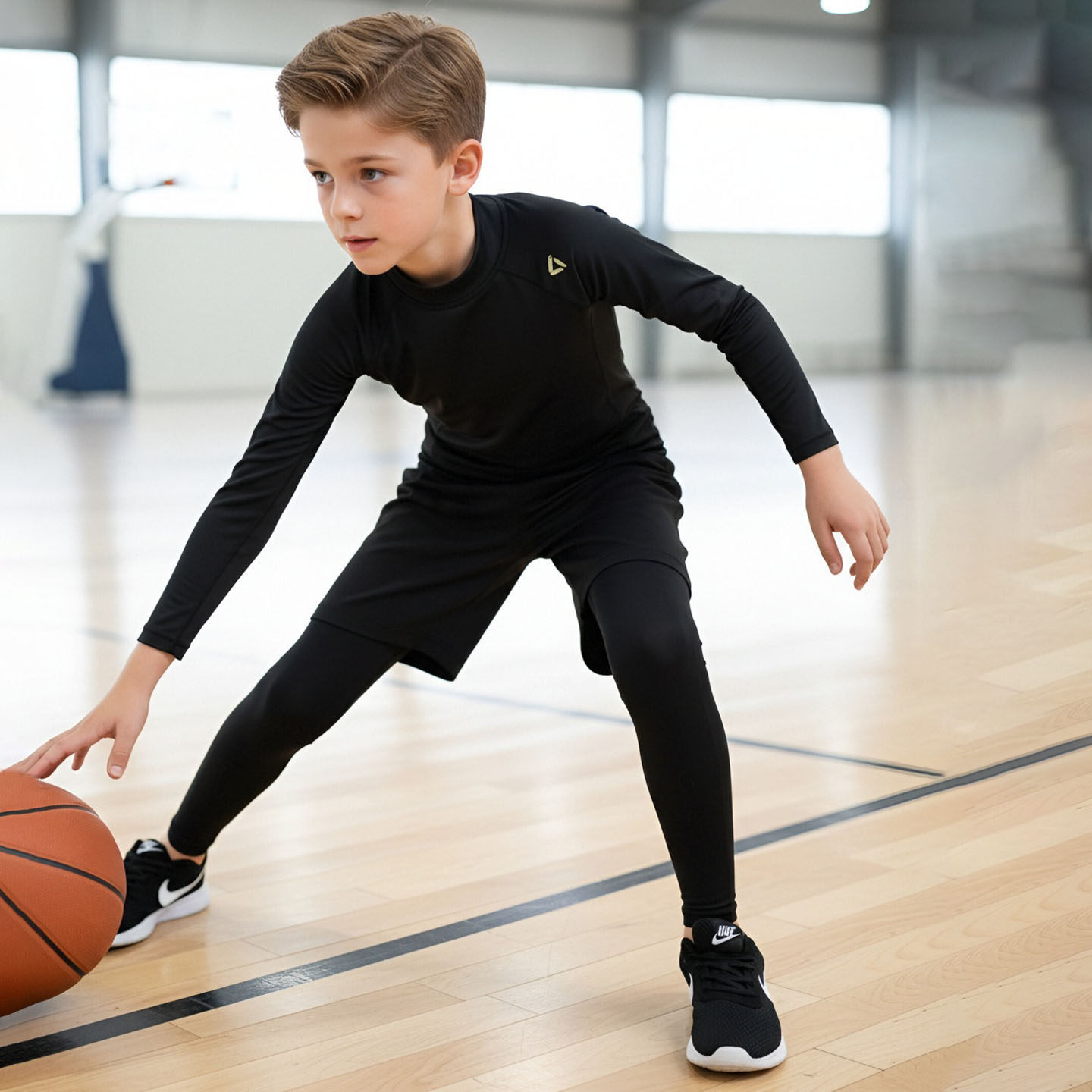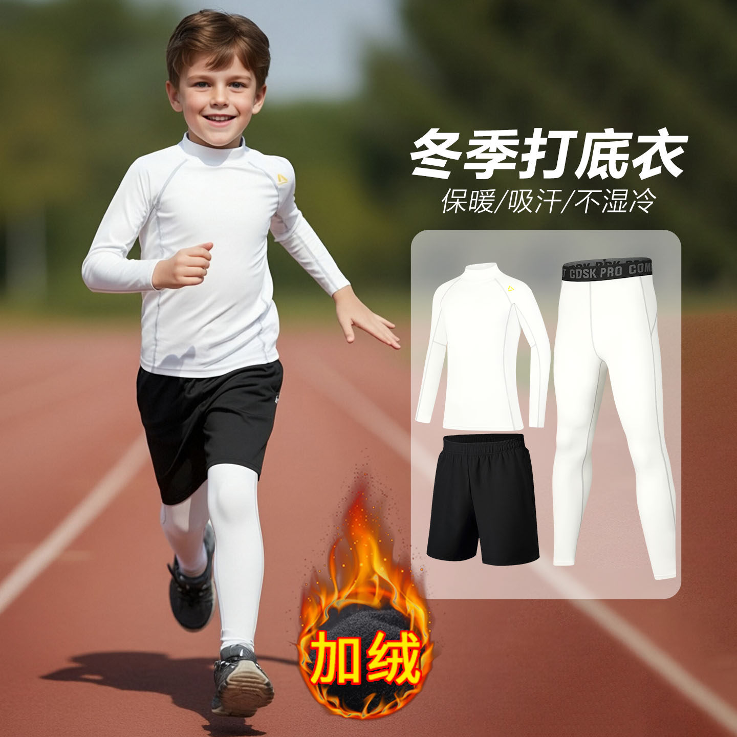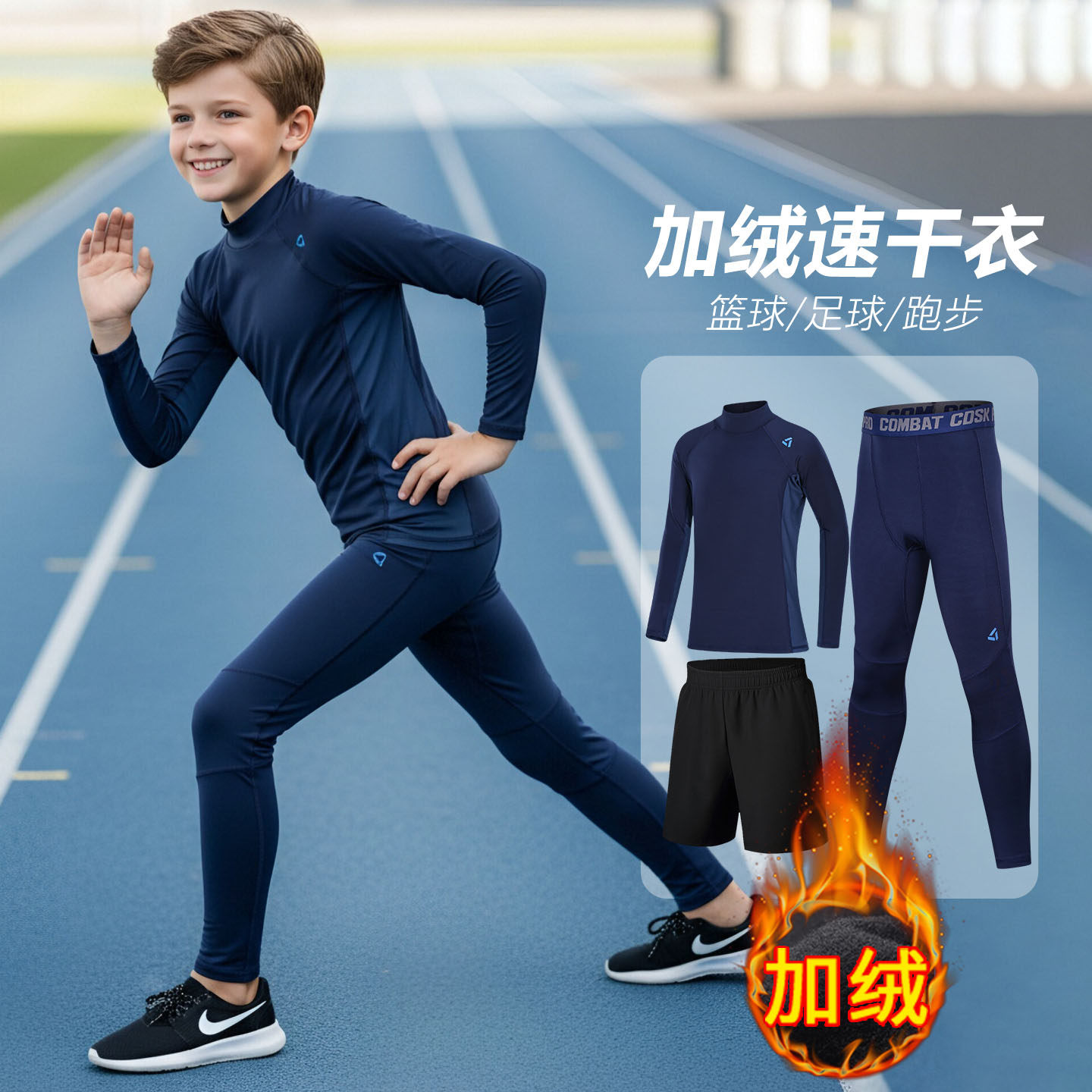 加绒冬季儿童紧身衣训练服男女童跑步速干健身服篮球足球打底套装