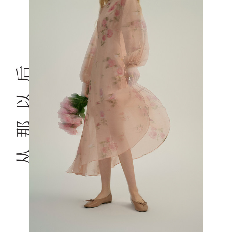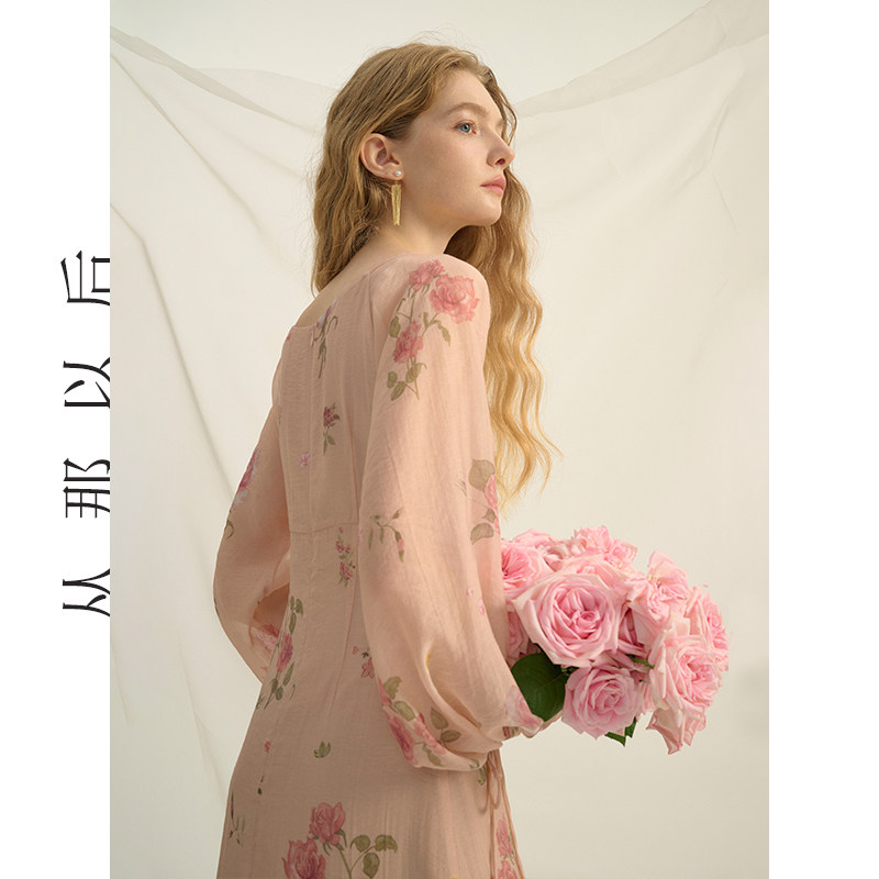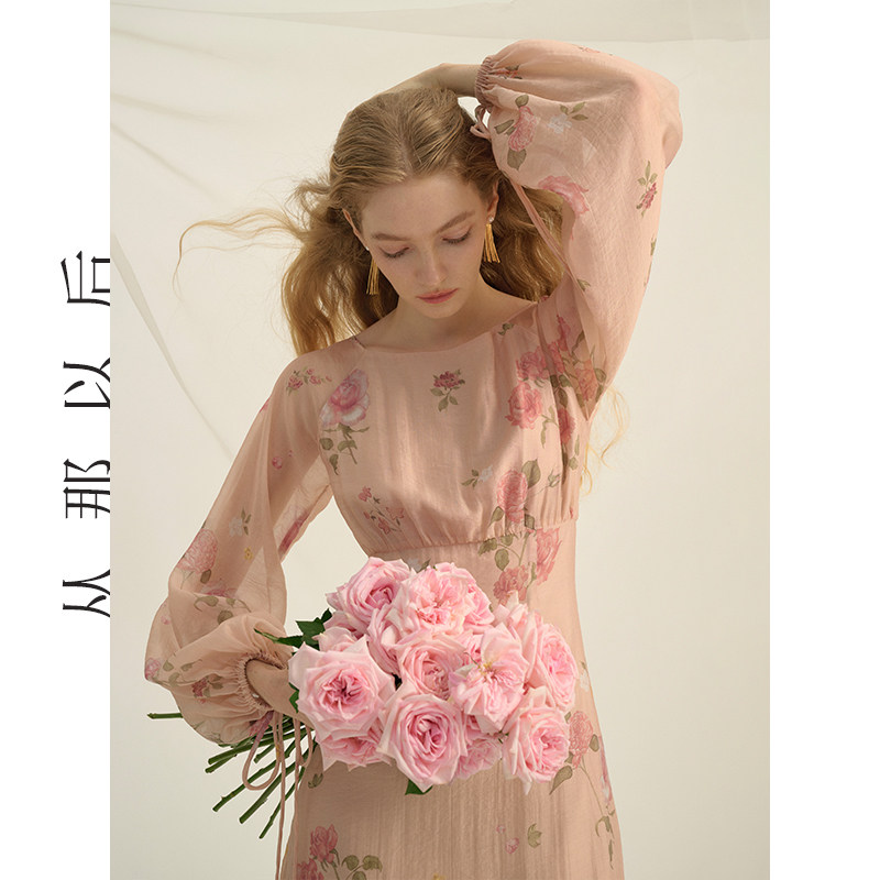 从那以后法式碎花连衣裙粉色长裙度假风裙子长袖鱼尾裙女秋季新款